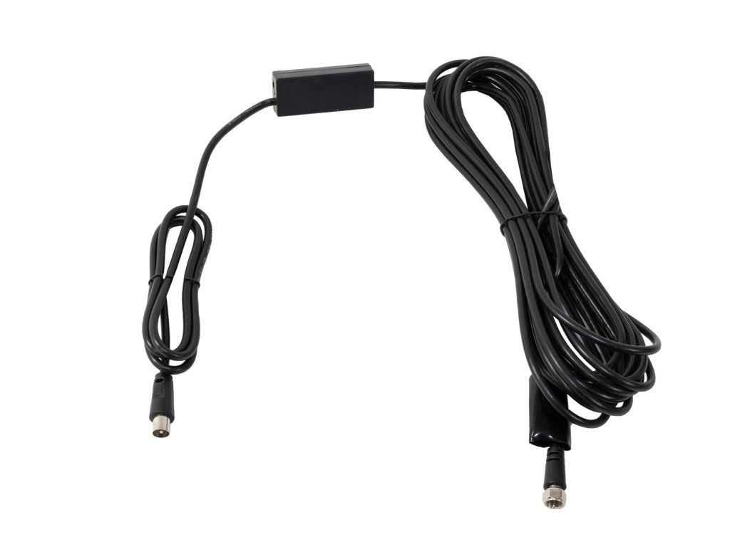 • Aktivní venkovní/pokojová anténa • Pro příjem FM/DAB+/DVB-T2 • Zesilovač, zisk 43 dBi , filtr LTE, 4G, 5G • Napájecí adaptér • Kabel 8+2m IEC male • Redukce F female / IEC male