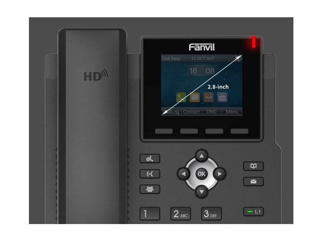 Fanvil X3SG je základní IP telefon s barevnou obrazovkou. Telefon obsahuje kodeky G.722 a Opus, aby uživatelům poskytla křišťálově čistý zvuk. Funkční klávesy, 4 SIP linky a podpora EHS náhlavních souprav z něj dělají efektivní obchodní kancelářský nástroj. Jasný 2,8palcový barevný displej s rozlišením 320 x 240 na IP telefonu Fanvil X3SG poskytuje uživateli grafiku s vysokým rozlišením. S širokopásmovými kodeky G.722 a Opus, ochranou proti hluku na pozadí Vám nabízí X3SG dokonalý HD zvuk při komunikaci. Bezdrátová EHS náhlavní souprava podporovaná na Fanvil X3SG prostřednictvím EHS kabelu vám umožní vyřešit situaci kdy při telefonování potřebujete mít volné ruce, což je v mnoha pracovních prostředích produktivnější. Hlavní parametry: HD zvuk s G.722 a Opus 2,8“ barevný displej 320*240 2 tlačítka linky s LED diodou 4 SIP účty Podpora EHS bezdrátové náhlavní soupravy Podpora IPv4, IPv6 protokolu Dva gigabitové porty, integrované PoE Uživatelské rozhraní telefonu je v angličtině, němčině, italštině, francouzštině, španělštině, portugalštině, ruštině, čínštině, korejštině, japonštině, polštiněDodatočné parametre