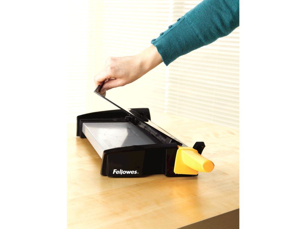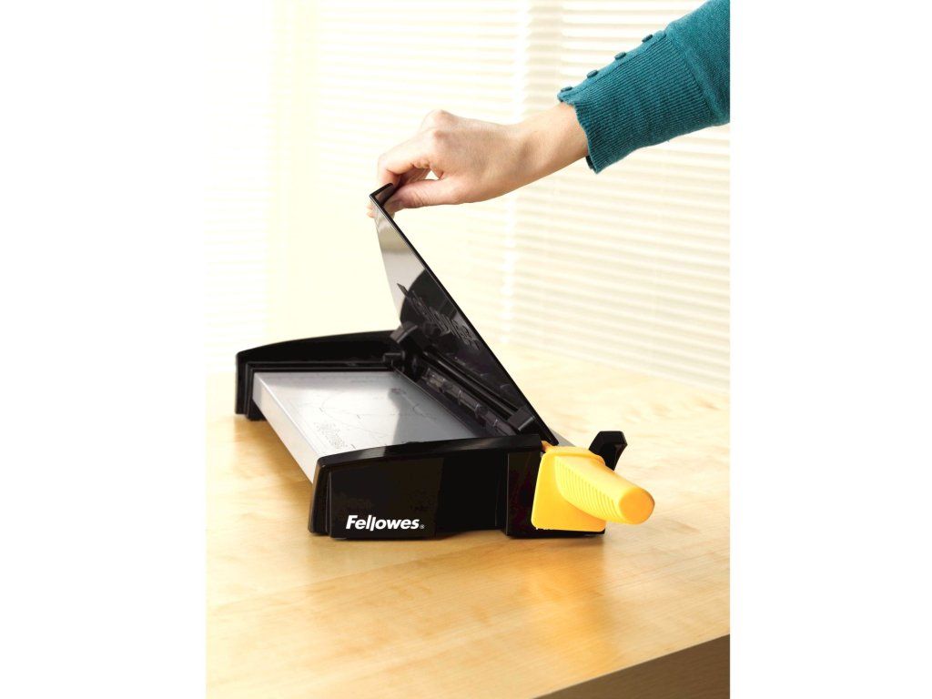 Páková řezačka pro formát do velikosti A3, ideální řešení pro používání v domácnosti a malé až střední kanceláři. Ergonomický, bezpečný a uživatelsky příjemný design. S ručním přítlakem stohu papíru a kvalitním nožem z nerezové oceli, který zajistí hladký a plynulý řez. • Kapacita řezu až 10 listů 80 g/m2, (tloušťka vrstvy až 1 mm) • Umožňuje i řezání materiálů jako plastové folie či fotografie • Kryt nože SafeCut™ zajišťuje bezpečnost při práci, pro přepravu a uskladnění se kryt jednoduše skládá • Kovový základ s integrovanými protiskluzovými nožičkami • Úchyty pro snadné přenášení • Přítlak materiálu minimalizuje riziko posunutí papíru při řezání • Vodící pravítko pro všechny velikosti, posuvný úhelník • Zařízení je certifikováno TÜV & GS a splňuje nejvyšší požadavky na bezpečnostDodatočné parametre