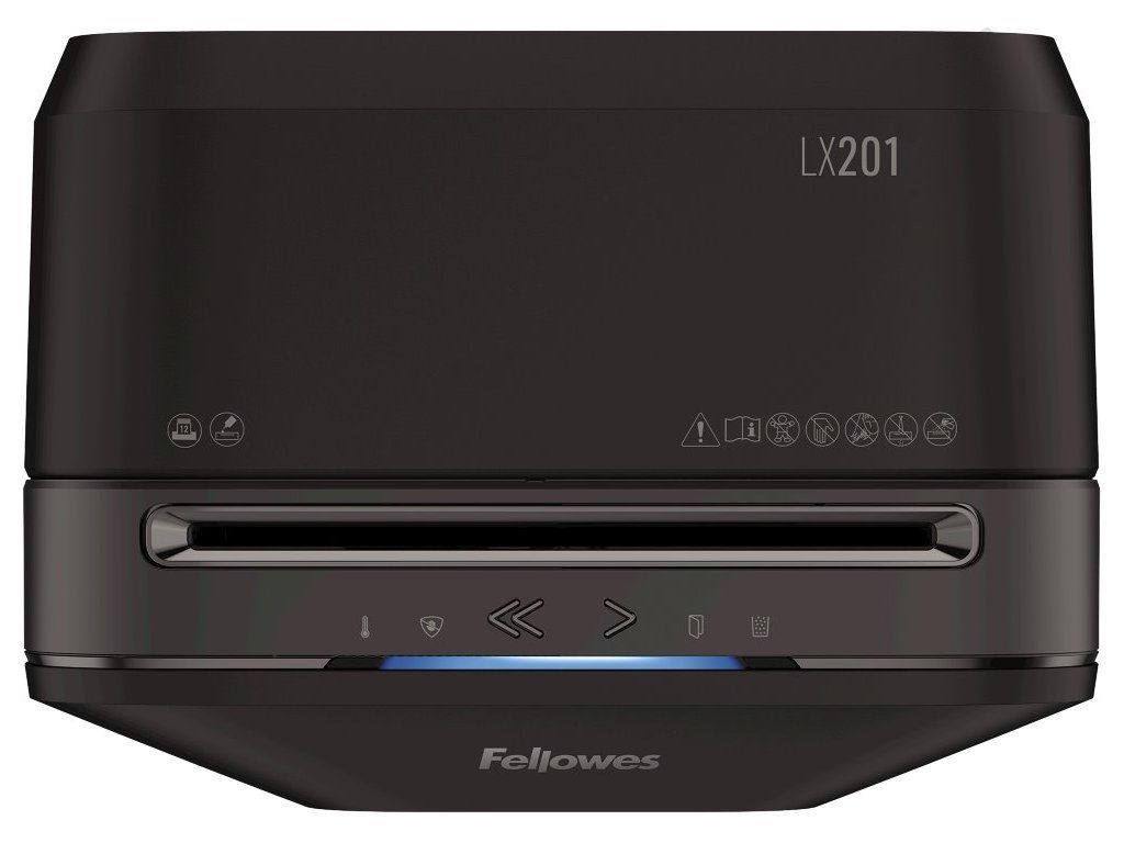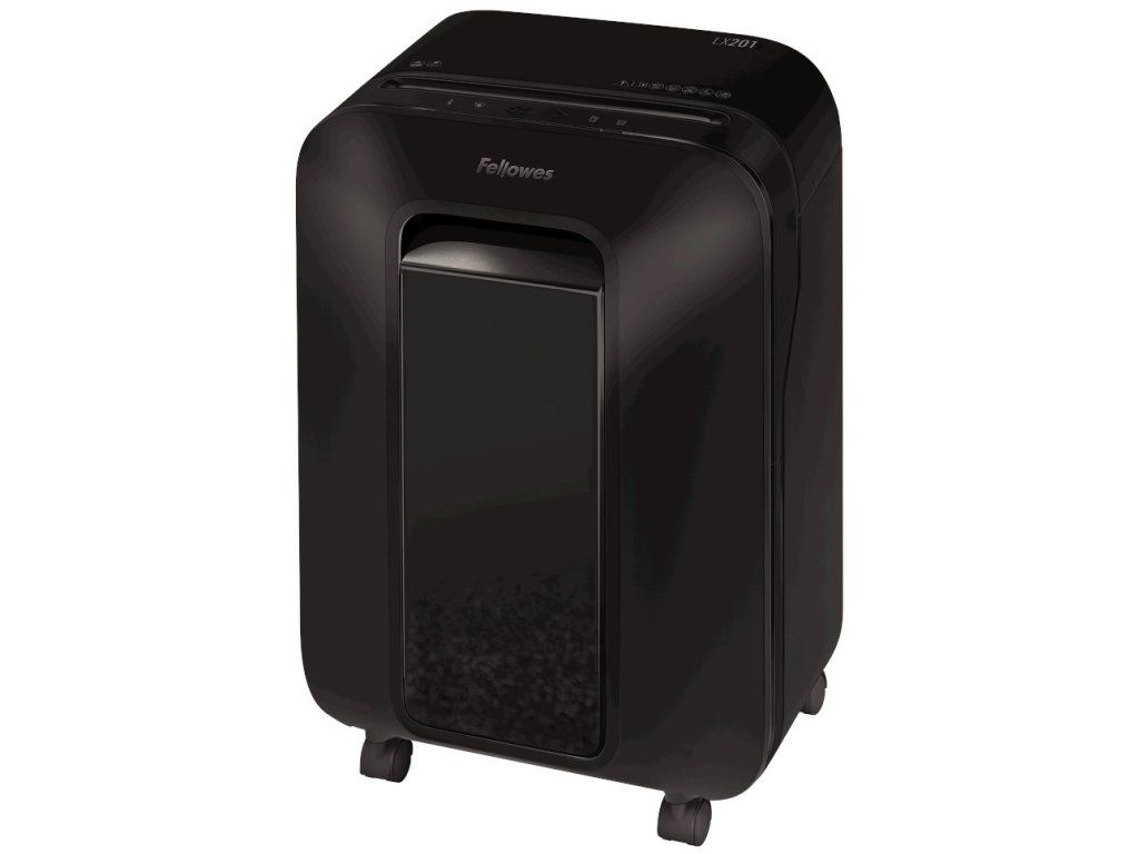 Fellowes LX 201Skartovačka s křížovým řezem. Dokáže pojmout až 12 listů papíru A4 najednou. Poradí si také s ničením platebních karet, malých sponek a svorek v dokumentech. Technologie SafeSense automaticky zastaví skartovací stroj při dotyku rukou v oblasti vstupního otvoru. Díky funkci Sleep Mode se zařízení po 2 minutách nečinnosti automaticky vypne. Výsuvný přední koš s velkým průzorem umožňuje vizuálně kontrolovat míru zaplnění.