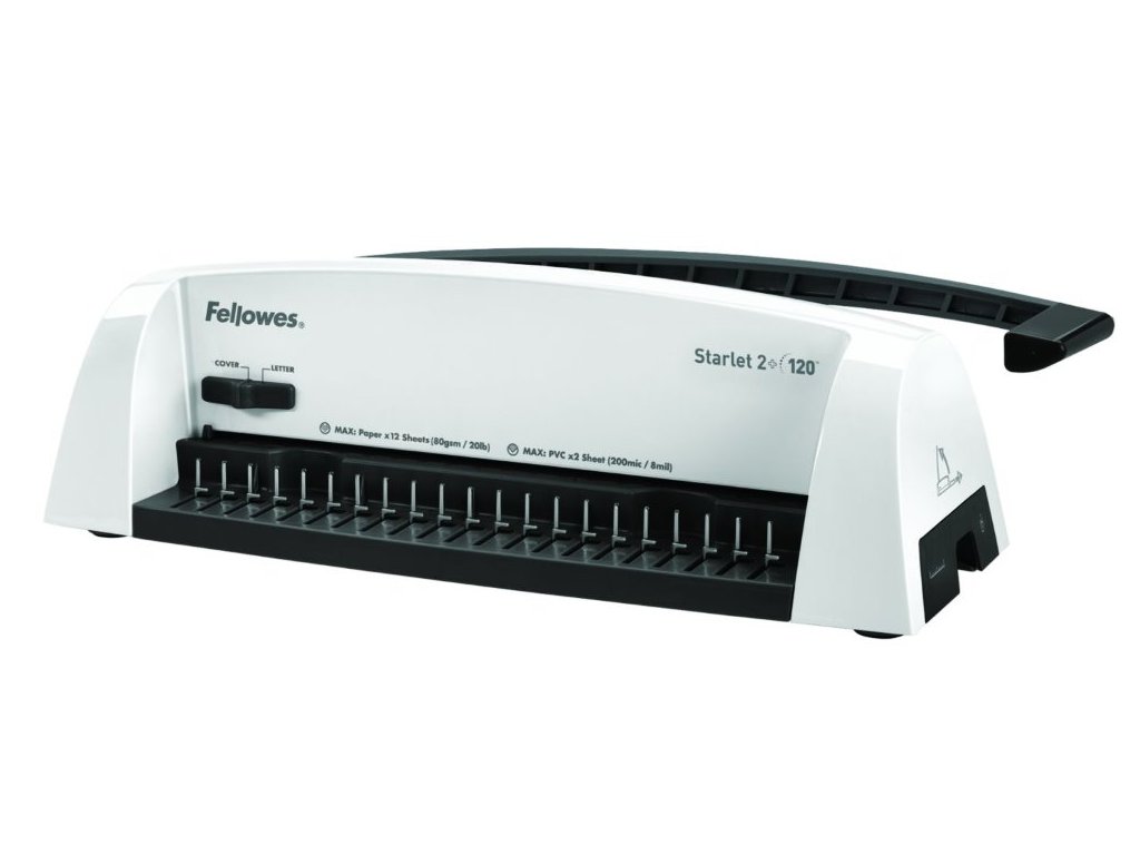 Fellowes Starlet 2+ 120; Vázací stroj pro děrování až 12 listů najednou. Speciální zásobník na hřbety s patentovaným systémem měření tloušťky dokumentů a výběru správného hřbetu. Díky dvěma přednastaveným pozicím pro A4 a A5 je obsluha vazače rychlá a...
