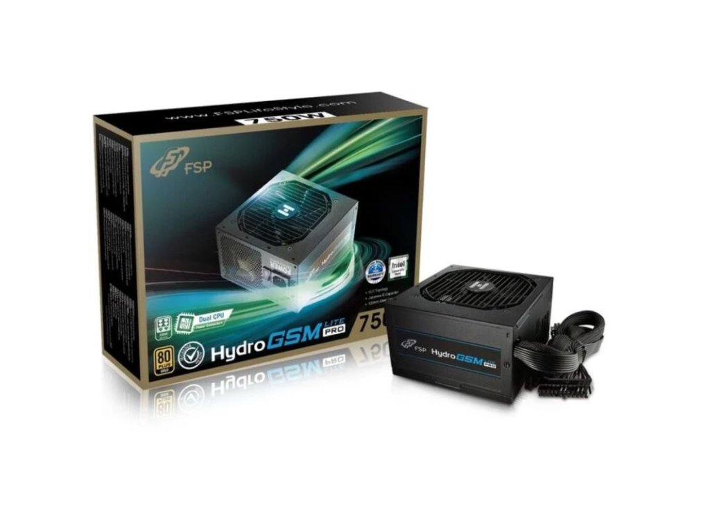 Kvalitný napájací zdroj, výkon 750 W, 80Plus Gold certifikácia, účinnosť minimálne 90% (50% záťaž), formát ATX, 120 mm tichý ventilátor, aktívny PFC, polo-modulárna kabeláž, konektory: 1x ATX 24-pin, 2x 4+4-pin, 4x 6+2-pin PCI-E, 8x SATA, 3x Molex, 1x FDD.