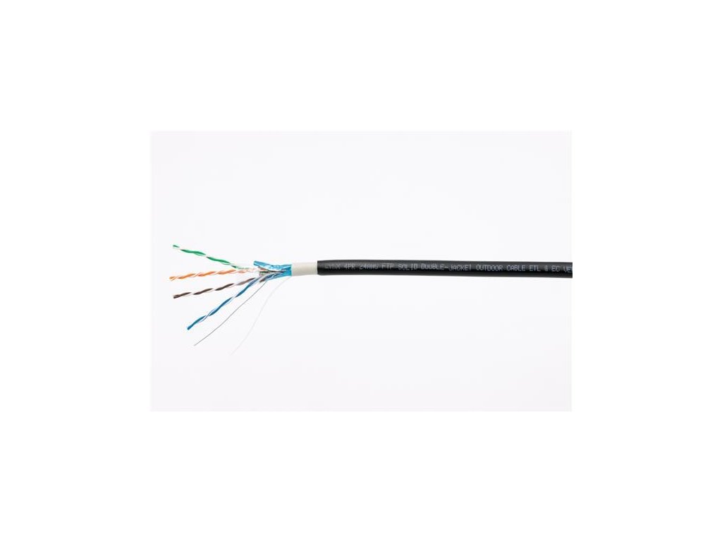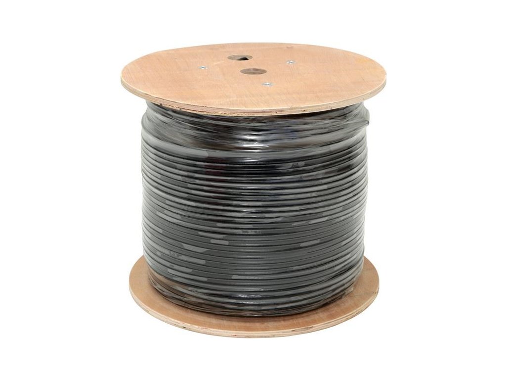 FTP kabel LYNX Cat5E, drát, dvojitý venkovní PE+PVC, černý, 305m cívka LX-SLD-FTP5E-OUTDJ-BK