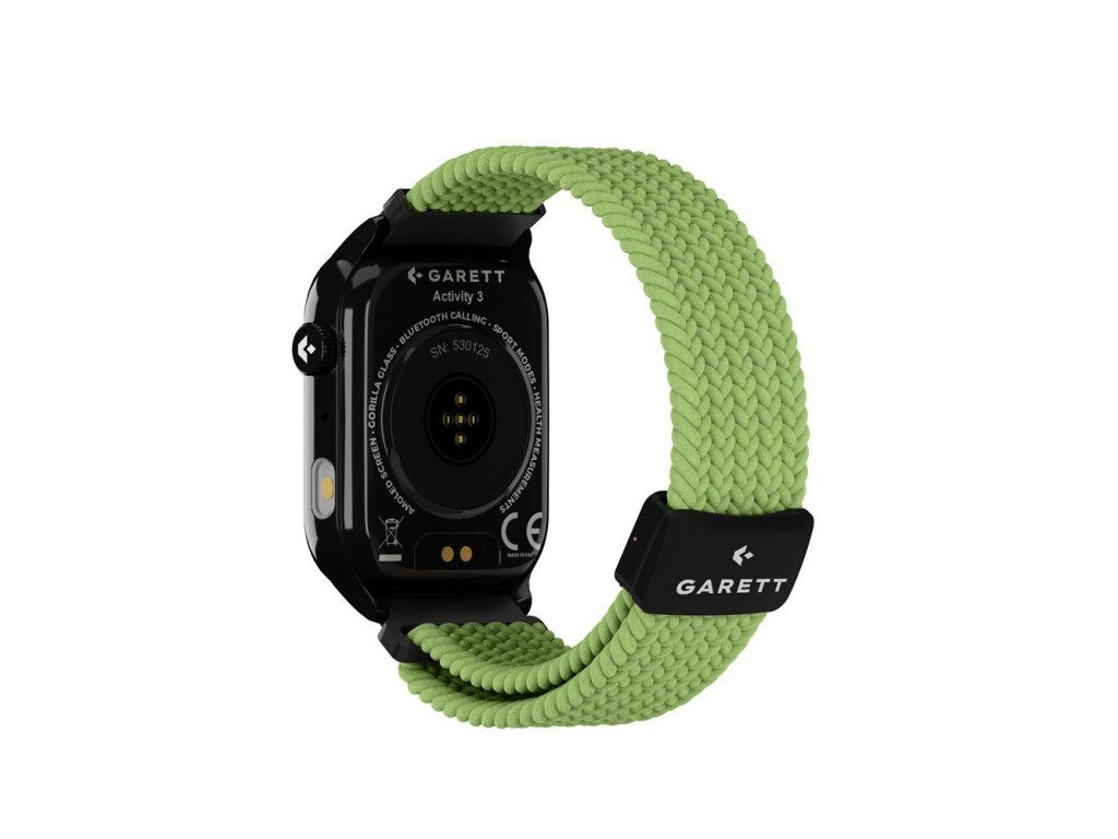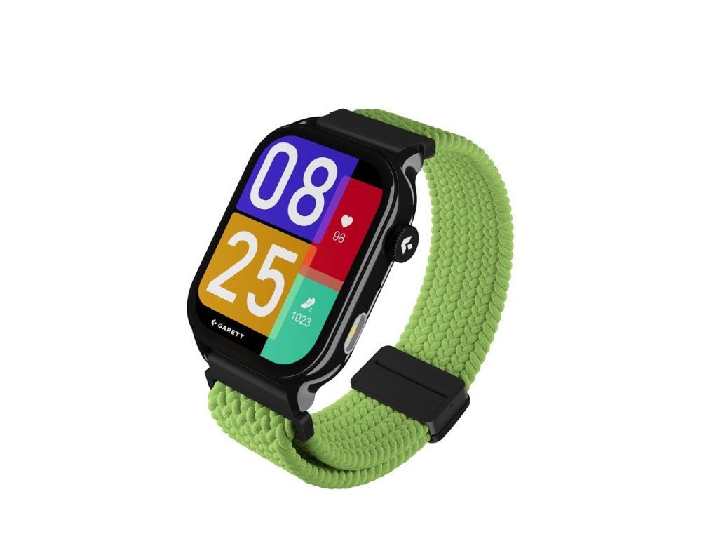 1,96” AMOLED displej 410 × 502 px s funkciou Always On Display, ochranné sklo Gorilla Glass, Bluetooth hovory, monitorovanie srdcového tepu, krvného tlaku a SpO2, viac ako 100 športových režimov, vodotesnosť IP68, batéria 340 mAh s výdržou až 7 dní, krokomer, monitoring spánku, hlasový asistent, kompatibilita s Android a iOS (Garett Smart), silikónový a textilný remienok v balení.