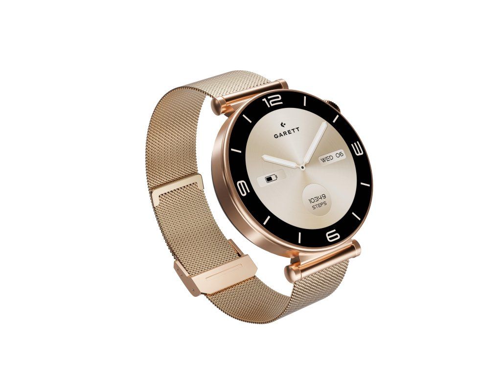 Elegantné smart hodinky Garett Rose v odtieni ružového zlata sú oveľa viac než len krásny doplnok. Sú vaším osobným asistentom, ktorý vás sprevádza každý deň. Postarajte sa o svoje zdravie, sledujte svoje každodenné aktivity a vyzerajte pritom úžasne. S týmito hodinkami sa budete cítiť výnimočne v každej situácii. Plňte si svoje ciele s eleganciou!