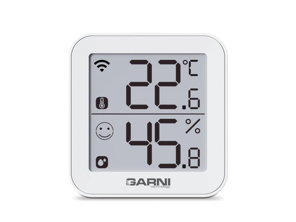 Chytrý vnútorný digitálny teplomer s vlhkomerom model GARNI 158THT má zabudovaný Wi-Fi modula prostredníctvom svojho chytrého systému je kompatibilný s platformou Tuya IOT. Pomocou aplikácie Tuya Smart môžete sledovať vnútornú teplotu a relatívnu vlhkosť, prehliadať históriu záznamov, nastavovať alarmy pre dané veličiny, spúšťať pokročilé funkcie za pomoci nameraných hodnôt a odoslať namerané údaje na email v Excel súbore. Je možné ho prepojiť s ďalšími produktmi chytré domácnosti, ovládanie potom prebieha cez aplikáciu v mobilnom zariadení. Podporuje integráciu do Google Assistant a Alexa.