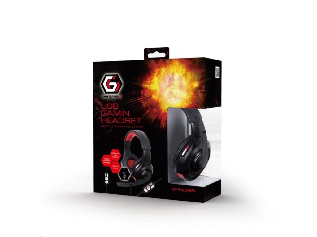 GEMBIRD sluchátka s mikrofonem GHS-U-5.1-01, gaming, 5.1 surround, černo-červená, USB GHS-U-5.1-01