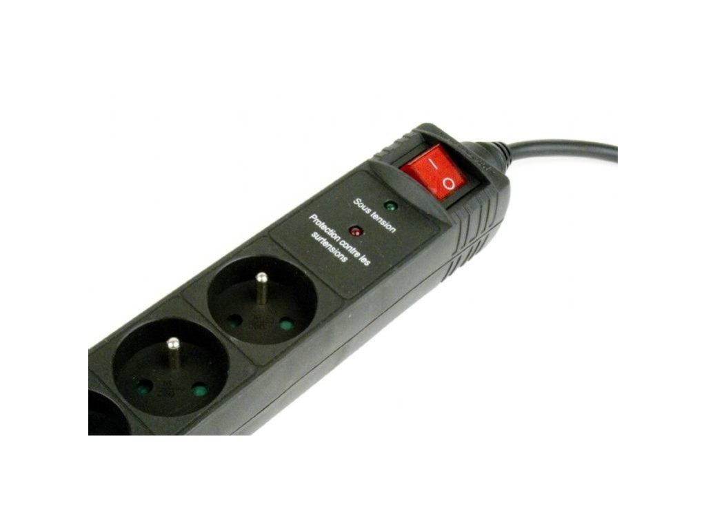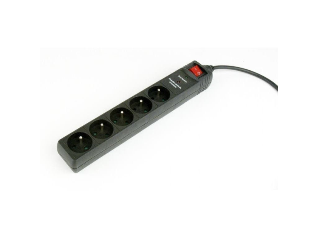 Prepäťová ochrana pre kanceláriu a domácnosť so vstupným napätím max. 250 V, 5 zásuviek 220V. Nehorľavé púzdro, zásuvky s detskou ochranou, vypínač. Maximálne celkové zaťaženie: 250 V AC, až 16 A, (50 - 60 Hz), Maximálne prepäťové napätie 6000 V, maximálny špičkový prúd 9000 A, energia 250 Joulou, Zásuvky: 5 X francúzskeho typu (kompatibilný s nemeckým typom Schuko), Nemecká (Schuko) zástrčka 16 A 1,5 mm2 napájací kábel, 1,5 m, Rozmery: 330 mm x 56 mm x 45 mm, Teplotný rozsah: (-5 ... + 40) ° C, Čistá hmotnosť: 0,45 kg, detská ochrana
