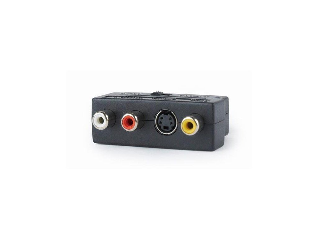 Inputs: composite RCA, S-Video, stereo RCA audio, SCART (via the enclosed adapter)