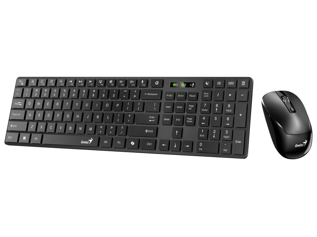 Genius SlimStar 8250 představují set klávesnice a myši na váš pracovní stůl. Tento model je připraven na činnost s aplikacemi, tabulkami, dokumenty i umělou inteligencí. Klávesnice Genius je vybavena samostatnou klávesou Copilot pro aktivaci AI. Jedním stiskem spustíte svého chytrého asistenta, který vám poradí s úkoly, vypracuje text e-mailu a dalších dokumentů, opatří informace na rešerše nebo odpolední poradu apod. Tenký design s chiclet klávesami je stylový a podporuje komfortní i tiché psaní. Fanoušci tabulek a čísel obecně ocení přítomnost numerického bloku.