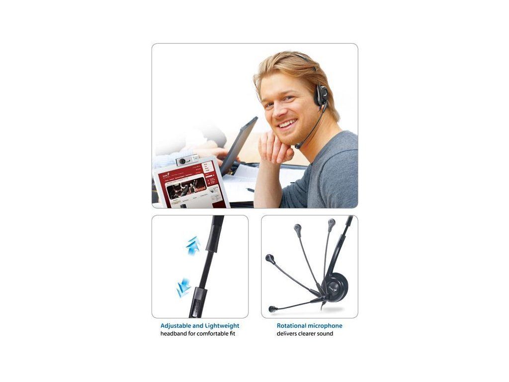 | Popis produktu: • Nastaviteľná veľkosť • Mäkké náušnice • Otočný mikrofón • Vhodné pre MSN, SKYPE a chatovanie na internete Frekvenčný rozsah: 20Hz~20KHz Citlivosť slúchadiel: 105dB Impedancia (@1KHz): 32ohm Dĺžka kábla: 1.8m Citlivosť mikrofónu: -38dB Rozhranie: 3.5mm jack Ovládanie hlasitosti: Nie Hmotnosť: 57g