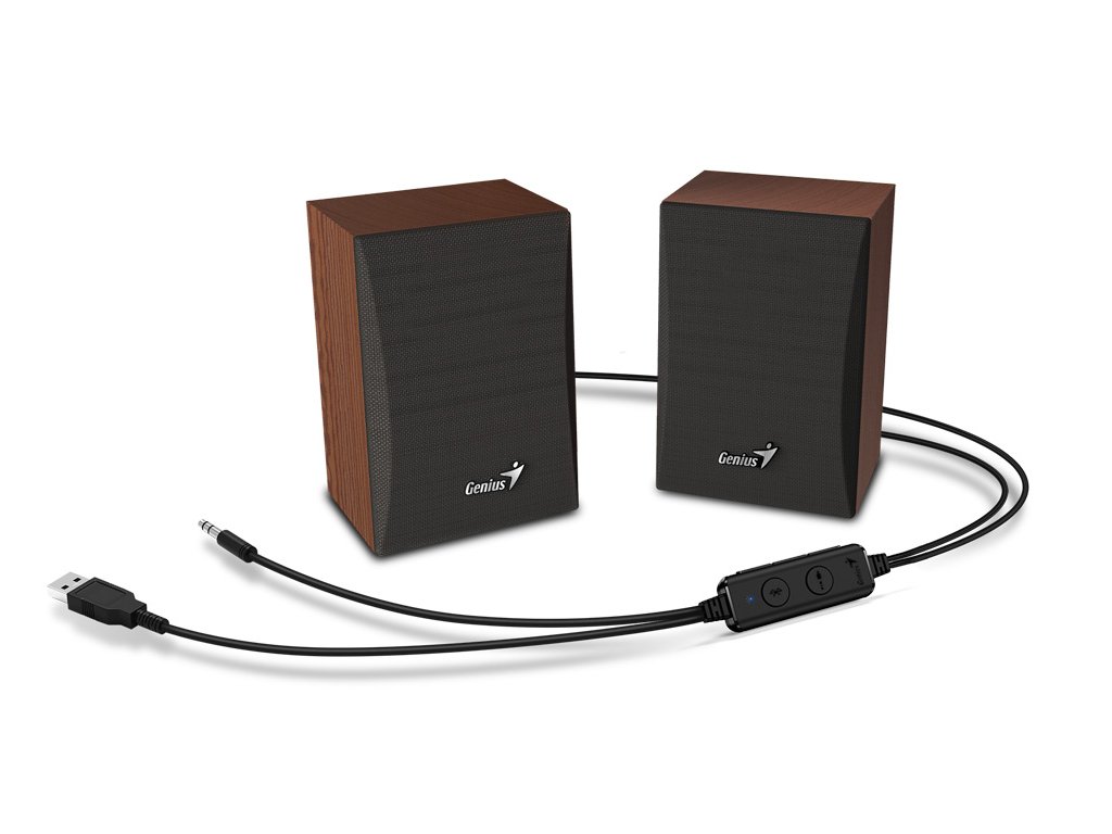 Genius bluetooth reproduktory SP-HF380BT Připojení: Bluetooth 5.0 + 3.5mm jack Výkon: 3 W Frekvenční rozsah: 150Hz - 20KHz Sensitivita: 450 ±, 100mv Hmotnost: 873 g Rozměry: 105 x 90 x 157 mm Barva: Brown WoodDodatočné parametre