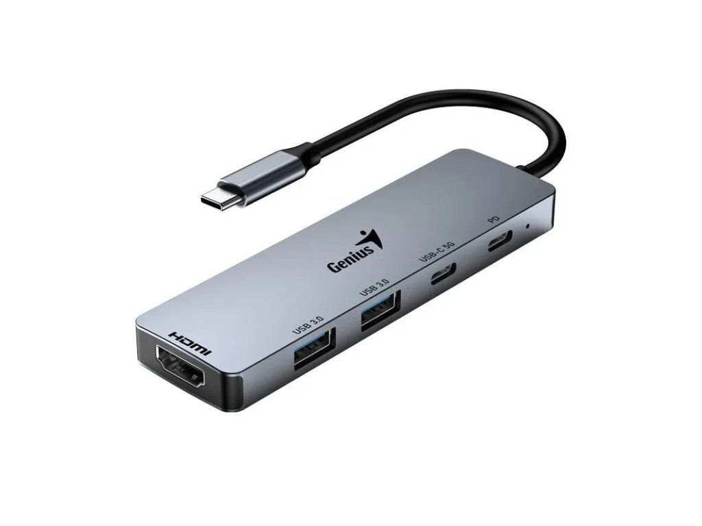 Genius UH-500 USB hub 5v1 Technické parametry Rozhraní/napájení: USB-C Porty: * 1x HDMI (4K@60Hz) * 2x USB-A 3.0 (5Gb/s) * 1x USB-C 3.0 (5Gb/s) * 1x USB-C s PD 100W Délka kabelu: 150mm Barva: šedá Rozměry: 109×31,5×11mm Hmotnost: cca 50g Doporučené požadavky na systém: volný port USB-C, Windows, macOS, Android OS, Apple iOS Obsah balení: * USB hub 5v1 * vícejazyčný průvodce Záruka: 2 rokyDodatočné parametre