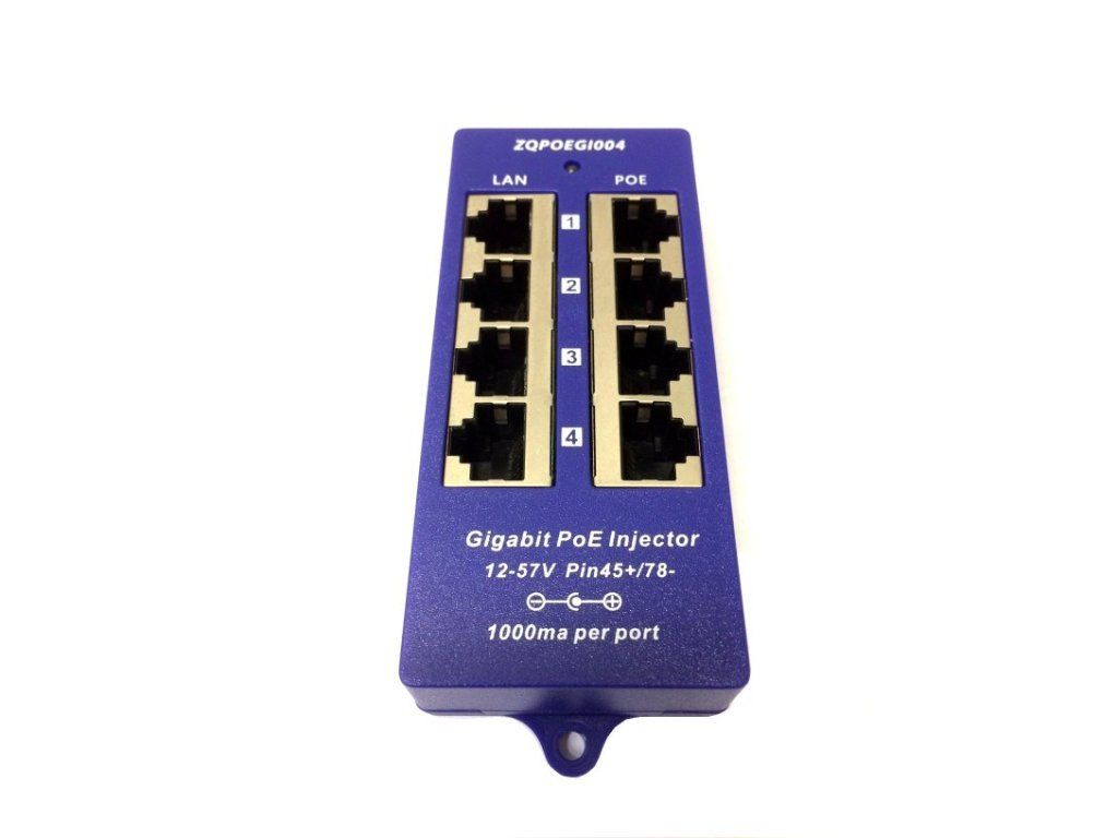 Panel integrující čtyři gigabitové pasivní POE injektory s napájecím rozsahem 12-57V a max. proudem 1000mA/port. Univerzální řešení pro vzdálené napájení většího počtu aktivních prvků s integrovaným extraktorem po UTP kabeláži. Vstup pro napájení prostřednictvím standardního napájecího 2.1mm jacku. Přidáním tohoto průchozího panelu do rozvaděče získáte napájecí centrum, které jednoduchým způsobem zapojíte mezi stávající switch a patchpanel, který již vede k napájenému zařízení (IP kamera, IP telefon, bezdrátové prvky, apod.). K napájení se využívají dva nepoužité páry ethernetového kabelu. Napájecí páry: 4,5 (kladný pól) / 7,8 (záporný pól) Rozhraní: 4x stíněný RJ45 konektor pro připojení do LAN (Data) 4x stíněný RJ45 konektor pro sloučený výstup (Data+Napájení) LED signalizace: Power OFF -- bez signalizace 4/5 (V+),7/8 (V-) -- zelená 4/5 (V-),7/8 (V+) -- červená Napájecí zdroj není součástí dodávky, volbu a výkonové parametry zdroje je třeba optimalizovat dle příslušných odběrů napájených prvků a jejich konfigurace. Maximální povolené příkonové hodnoty na vstupu do POE panelu: 24V: 96W (4A) 48V: 192W (4A) Technické specifikace: Vstup : 12-57V DC 2.1MM/Phoenix DC connector Výstup: 12-57V (max 1A per port) Data: 1/2&3/6&4/5&7/8 Napájení: 4/5 & 7/8 Data In :Connects PC/HUB/Switch Hmotnost : 85g Rozměry: 115mm×45mm×25mm Ethernet : TIA/EIA 568 Cat. 5 Data rate : 10/100/1000Mbps Typ konektoru: RJ-45 Rozsah provozních teplot : 0°C ~ +40°C Rozsah skladovacích teplot : -40°C ~+70°C Vlhkost (provoz.) : 10% ~ 80% RH Vlhkost (sklad.) :5% ~ 90% RH Certification: CE , FCCDodatočné parametre