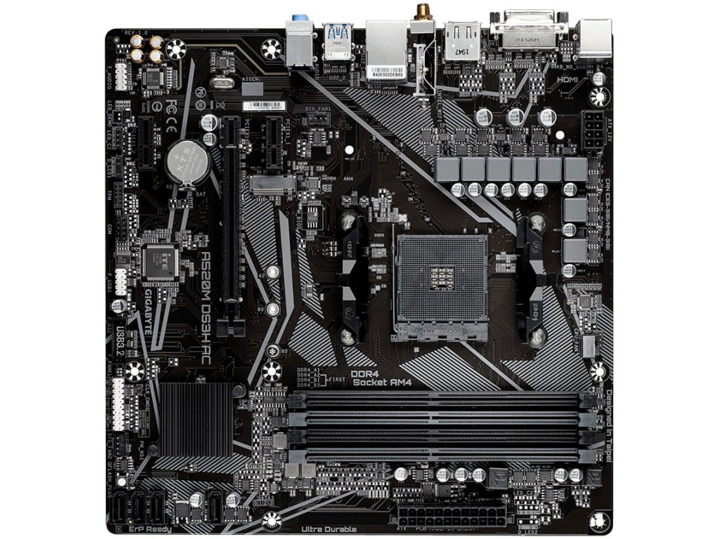 GIGABYTE A520M DS3H AC (rev. 1.x) Chipset: AMD A520 Rozměrový formát: Mikro ATX (244x244mm) Podpora pro procesory: AMD Ryzen™ 3. až 5. generace Patice procesoru: AM4 Paměť: * 4x DIMM patice podporující až 128GB, DDR4 4400(OC) / 4000(OC) / 3866(OC) / 3800(OC) / 3733(OC) / 3600(OC) / 3466(OC) / 3400(OC) / 3333(OC) / 3300(OC) / 3200 / 2933 / 2667 / 2400 / 2133 MT/s paměťové moduly * dvoukanálová architektura paměti * podpora paměťových modulů Extreme Memory Profile (XMP) Grafické výstupy: * 1x DVI-D port s maximálním rozlišením 1920 x 1200 při 60 Hz * 1x DisplayPort s maximálním rozlišením 5120 x 2880 při 60 Hz - Podpora pro verzi DisplayPort 1.4, HDCP 2.3 a HDR * 1x HDMI port s maximálním rozlišením 4096 x 2160 při 60 Hz - Podpora pro verzi HDMI 2.1, HDCP 2.3 a HDR Zvuková karta: * Kodek Realtek® Audio * High Definition Audio * 2/4/5.1/7.1 kanál Ethernet: Realtek® GbE LAN WLAN + Bluetooth: * Intel® Dual Band Wireless-AC 3168 (pro rev. 1.0, 1.2, 1.3) (802.11 a, b, g, n, ac), podpora frekvenčních pásem 2,4/5 GHz + Bluetooth v4.2 * Intel® Wireless-AC 9260 (pro rev. 1.1) (802.11 a, b, g, n, ac), podpora frekvenčních pásem 2,4/5 GHz + Bluetooth v5.1 * Realtek® RTL8821CE (pro rev. 1.4) (802.11 a, b, g, n, ac), podpora frekvenčních pásem 2,4/5 GHz + Bluetooth v5.0 Rozšiřující sloty: * 1x PCI Express x16 podporuje PCIe 3.0 a běží na x16 * 2x PCI Express x1 podporuje PCIe 3.0 a běží na x1 (PCIEX1_1, PCIEX1_2) Úložný prostor: celkem podporuje 1 slot M.2 a 4 porty SATA 6Gb/s * 1x M.2, M key typ 2242/2260/2280 - podpora PCIe 3.0 x4/x2 SSD * 4x port SATA 6Gb/s RAID řadič: podpora RAID 0/1/10 USB: Zadní USB (celkem 6 portů) * 4x USB 3.2 Gen 1 * 2x USB 2.0/1.1 Přední USB (celkem 4 portů) * 1x USB 3.2 Gen 1 header - podpora dalšího 1 USB 3.2 Gen 1 * 1x USB 2.0/1.1 header - podpora dalšího 1 USB 2.0/1.1 Porty na zadním panelu: * 4x USB 3.2 Gen 1 * 2x USB 2.0/1.1 * 1x DVI-D * 1x HDMI * 1x DisplayPort * 1x PS/2 * 1x RJ-45 * 2x anténní konektor SMA (1T1R) * 3x audio jack Interní porty: Napájení * 1x 24-pin ATX hlavní napájecí konektor * 1x 8-pin ATX 12V napájecí konektor Související s ventilátorem a chlazením * 1x CPU fan header * 2x system fan headers Související s úložištěm * 1x M.2 slot (Key M) * 4x SATA 6Gb/s port USB * 1x USB 3.2 Gen 1 header * 1x USB 2.0/1.1 header Ostatní * 1x adresovatelný LED strip header * 1x RGB LED strip header * 1x front panel header * 1x front panel audio header * 1x serial port header * 1x Clear CMOS jumper * 1x Q-Flash Plus tlačítko * 1x Trusted Platform Module header (2x6 pin, pouze pro modul GC-TPM2.0_S) BIOS: 1x 128Mb flash, AMI UEFI BIOS, PnP 1.0a, DMI 2.7, WfM 2.0, SM BIOS 2.7, ACPI 5.0 Odkaz na stránku výrobce: https://www.gigabyte.cz/motherboards/A520M-DS3H-AC-rev-1x/Key-FeaturesDodatočné parametre