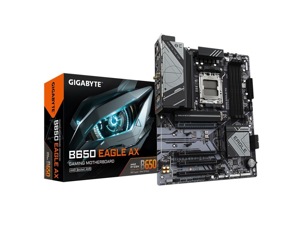 GIGABYTE B650 EAGLE AX * Smart Fan 6 * Q-Flash Plus Chipset: AMD B650 Rozměrový formát: ATX (305x244mm) Podpora pro procesory: AMD Ryzen™ řady 8000/7000 Patice procesoru: AM5 Paměť: * 4x DIMM patice podporující až 192GB (kapacita 48GB single DIMM), DDR5 7600(OC)/7200(OC)/7000(OC)/6800(OC)/6600(OC)/6400(OC)/6200(OC)/6000(OC)/5600(OC)/5200/4800/4400MT/s paměťové moduly * dvoukanálová architektura paměti * podpora pro AMD EXtended Profiles for Overclocking (AMD EXPO™) a podpora paměťových modulů Extreme Memory Profile (XMP) Grafické výstupy: grafické specifikace se mohou lišit v závislosti na podpoře CPU * 1x DisplayPort 1.4 * 1x HDMI® 2.1 Zvuková karta: kodek Realtek 7.1 Surround Sound High Definition Audio CODEC Ethernet: Realtek® GbE LAN WLAN + Bluetooth: Wi-Fi 6E + BT5 Rozšiřující sloty: * 1x PCI Express x16 (PCIEX16) * 3x PCI Express x16, podpora PCIe 3.0 x1 RAID řadič: podpora pro RAID 0/1/10 pro úložná zařízení NVMe SSD a SATA Úložný prostor: celkem podporuje 3 sloty M.2 a 4 porty SATA 6Gb/s * 1x M.2 (M2A_CPU), integrovaný v CPU, podpora Socket 3, M key, typ 25110/2580 SSD * 1x M.2 (M2B_CPU), integrovaný v CPU, podpora Socket 3, M key, typ 22110/2280 SSD * 1x M.2 (M2C_SB), integrovaný v čipsetu, podpora Socket 3, M key, typ 22110/2280 PCIe 4.0 x4/x2 SSD * 4x port SATA 6Gb/s USB: Zadní USB (celkem 9 portů) * 1x USB typ-C®, s podporou USB 3.2 Gen 1 * 2x USB 3.2 Gen 2 typ-A (červený) * 6x USB 2.0/1.1 Přední USB (celkem 9 portů) * 1x USB typ-C® konektor - podpora USB 3.2 Gen 1 * 1x USB 3.2 Gen 1 header - podpora dalších 2 portů USB 3.2 Gen 1 * 3x USB 2.0/1.1 header - podpora dalších 6 portů USB 2.0/1.1 Porty na zadním panelu: * 1x DisplayPort * 1x HDMI * 1x PS/2 pro klávesnici/myš * 2x SMA anténní konektor (2T2R) * 1x USB typ-C®, s podporou USB 3.2 Gen 1 * 2x USB 3.2 Gen 2 typ-A (červený) * 6x USB 2.0/1.1 * 1x RJ-45 * 3x audio jack Interní porty: Napájení * 1x 24-pin ATX hlavní napájecí konektor * 1x 8-pin ATX 12V napájecí konektor Související s ventilátorem a chlazením * 1x CPU fan header * 1x CPU fan/water cooling pump header * 2x system fan header * 1x system fan/water cooling pump header Související s úložištěm * 3x M.2 slot (Key M) * 4x SATA 6Gb/s port USB * 1x USB typ-C® header, s podporou USB 3.2 Gen 1 * 1x USB 3.2 Gen 1 header * 3x USB 2.0/1.1 header Ostatní * 3x adresovatelný RGB Gen2 LED strip header * 1x RGB LED strip header * 1x front panel header * 1x front panel audio header * 1x Trusted Platform Module header (pouze pro modul GC-TPM2.0 SPI/GC-TPM2.0 SPI 2.0/GC-TPM2.0 SPI V2) * 1x tlačítko Q-Flash Plus * 1x serial port header * 1x Clear CMOS jumper BIOS: 1x 256Mb flash, AMI UEFI BIOS, PnP 1.0a, DMI 2.7, WfM 2.0, SM BIOS 2.7, ACPI 5.0 Odkaz na stránku výrobce: https://www.gigabyte.com/Motherboard/B650-EAGLE-AX#kfDodatočné parametre
