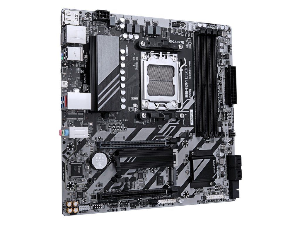 GIGABYTE B840M DS3H Chipset: AMD B840 Rozměrový formát: Micro ATX (244x244mm) Podpora pro procesory: AMD Ryzen™ 7. až 9. generace Patice procesoru: AM5 Paměť: * 4x DIMM patice podporující až 256GB, DDR5 8200(OC) / 8000(OC) / 7950(OC) / 7900(OC) / 7800(OC) / 7600(OC) / 7400(OC) / 7200(OC)/7000(OC)/6800(OC)/6666(OC)/6600(OC)/6400(OC)/6200(OC)/ 6000(OC)/5600(OC)/5200/4800/4400 MT/s paměťové moduly * dvoukanálová architektura paměti * podpora paměťových modulů AMD EXtended Profiles pro přetaktování (AMD EXPO™) a Extreme Memory Profile (XMP) Grafické výstupy: * 2x DisplayPort s maximálním rozlišením 3840 x 2160 při 144 Hz - Podpora pro DisplayPort verze 1.4 * 1x HDMI s maximálním rozlišením 4096 x 2160 při 60 Hz - Podpora pro verzi HDMI 2.1 a HDCP 2.3 a HDR Zvuková karta: * Kodek Realtek® Audio * High Definition Audio * 2/4/5.1/7.1 kanál Ethernet: Realtek® 2,5 GbE LAN Rozšiřující sloty: * 1x PCI Express x16 podporuje PCIe 4.0 a běží na x16 (PCIEX16) * 1x PCI Express x16 podporuje PCIe 3.0 a běží na x4 (PCIEX4) Úložný prostor: celkem podporuje 2 slotů M.2 a 4 portů SATA 6Gb/s * 1x M.2, M key typ 2580/2280 - podpora PCIe 4.0 x4/x2 SSD (M2A_CPU) * 1x M.2, M key typ 25110/22110/2580/2280 - podpora PCIe 4.0 x4/x2 SSD (M2B_CPU) * 4x port SATA 6Gb/s RAID řadič: podpora RAID 0/1/10 pro úložná zařízení SATA USB: Zadní USB (celkem 7 portů) * 1x USB Typ-C® - podpora USB 3.2 Gen 1 * 2x USB 3.2 Gen 1 * 4x USB 2.0/1.1 Přední USB (celkem 7 portů) * 1x USB Typ-C® header - podpora USB 3.2 Gen 1 * 1x USB 3.2 Gen 1 header - podpora dalšího 1 USB 3.2 Gen 1 * 2x USB 2.0/1.1 header - podpora dalších 2 USB 2.0/1.1 Porty na zadním panelu: * 1x USB Typ-C® - podpora USB 3.2 Gen 1 * 2x USB 3.2 Gen 1 * 4x USB 2.0/1.1 * 1x HDMI * 2x DisplayPort * 1x Tlačítko Q-Flash Plus * 1x PS/2 * 3x audio jack * 1x RJ-45 Interní porty: Napájení * 1x 24-pin ATX hlavní napájecí konektor * 1x 8-pin ATX 12V napájecí konektor Související s ventilátorem a chlazením * 1x CPU fan header * 1x CPU fan/water cooling pump header * 1x system fan header * 1x system fan/water cooling pump header Související s úložištěm * 2x M.2 slot * 4x SATA 6Gb/s port USB * 1x USB typ-C® header - podpora USB 3.2 Gen 1 * 1x USB 3.2 Gen 1 header * 2x USB 2.0/1.1 header Ostatní * 2x adresovatelný RGB Gen2 LED strip header * 1x RGB LED strip header * 1x front panel header * 1x front panel audio header * 1x Trusted Platform Module header (pouze pro modul GC-TPM2.0 SPI/GC-TPM2.0 SPI 2.0/GC-TPM2.0 SPI V2) * 1x Clear CMOS jumper * 1x reset jumper BIOS: 1x 256Mb flash, AMI UEFI BIOS, PnP 1.0a, DMI 2.7, WfM 2.0, SM BIOS 2.7, ACPI 5.0 Odkaz na stránku výrobce: https://www.gigabyte.cz/motherboards/B840M-DS3H/Key-FeaturesDodatočné parametre