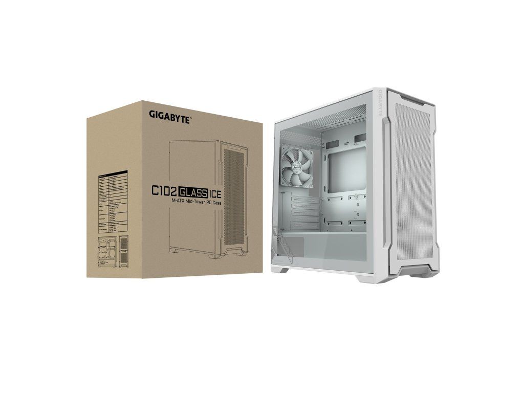 GIGABYTE C102 GLASS ICE * boční panel z tvrzeného skla v plné velikosti * odnímatelný prachový filtr * kompatibilní s chlazením kapalinou až 360 mm * odnímatelný magnetický přední panel Typ: Mid Tower Podporuje základní desky: Mini ITX/Micro ATX Počet rozšiřujících slotů: 5 Pole pro disková úložiště: * 2x 3,5“ * 2x + 1x (místo 3,5'' disku) 2,5'' Externí porty: * 2x USB 3.0 * 1x kombinovaný audio konektor 3,5mm (podporuje HD Audio) Podpora pro přídavné chlazení * přední: chladič max 360mm, ventilátor 3x 120mm/2x 140mm * horní: chladič max 360mm, ventilátor 3x 120mm/2x 140mm * boční: chladič max 240mm, ventilátor 2x 120mm * zadní: chladič max 120mm, ventilátor 1x 120mm Předinstalované ventilátory * přední: 1x 120mm * zadní: 1x 120mm Bočnice: tvrzené sklo 4mm Maximální výška chladiče CPU: 165mm Maximální délka PSU: 200mm Maximální délka GPU: 410mm Osvětlení: ne Typ zdroje: ATX Prachové filtry: nahoře, dole, na boku Materiál: ocel, plast, sklo Barva: bílá Rozměry: 450*210*450mm Hmotnost: 5,79kg Záruka: 2 roky Odkaz na stránku výrobce: https://www.gigabyte.com/PC-Case/GB-C102GI-GLOBAL#kfDodatočné parametre