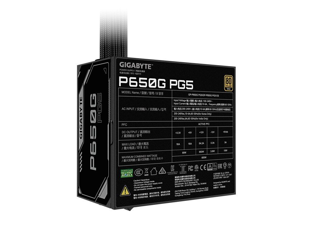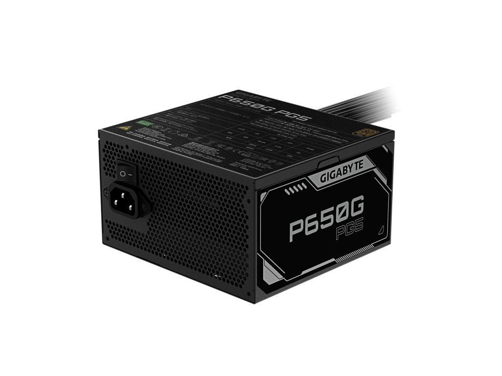 GIGABYTE P650G PCIE 5.1 * vysoce kvalitní japonské kondenzátory * 120mm tichý ventilátor s hydraulickým ložiskem (HYB) * ochrana OVP/OPP/SCP/UVP/OCP/OTP * certifikace 80 PLUS Gold * odolné kompaktní provedení Typ: Intel Form Factor ATX 12V v3.1 PFC: aktivní Výkon: 650W Typ ventilátoru: 120mm (HYB) Účinnost: 90% při průměrné zátěži Vstupní proud: 10-6A Vstupní napětí: 100-240V AC (plný rozsah) Vstupní frekvence: 60-50Hz Konektory: * 1x ATX/MB 20+4pin: 600mm*1 * 1x CPU/EPS 4+4pin: 600mm+150mm*1 * 1x PCI-e 16pin: 500mm*1 * 2x PCI-e 6+2pin: 500mm+150mm*2 * 6x SATA: 420mm+150mm+150mm*2 * 3x 4pin peripheral: 420mm+150mm+150mm*1 Rozměry: 150x140x86mm Záruka: 5 let Odkaz na stránky výrobce: https://www.gigabyte.com/Power-Supply/GP-P650G-PG5#kfDodatočné parametre