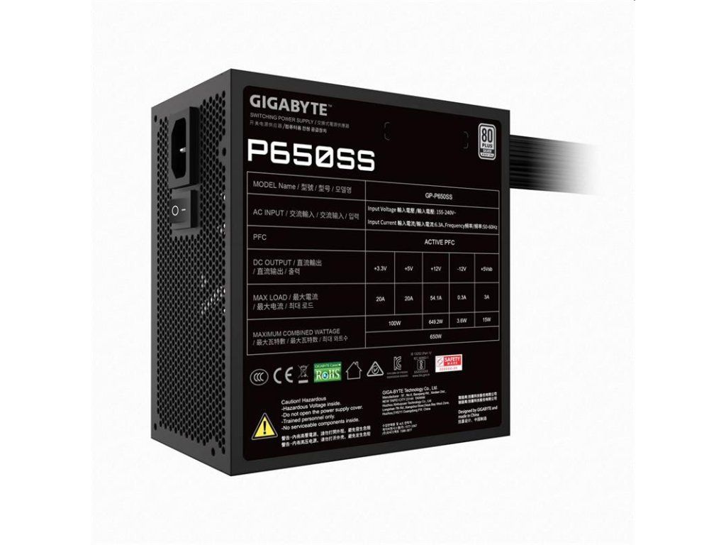 KEY FEATURE 80 PLUS Silver certified (230V EU) Support Intel ATX 3.0 standard (compatible with ATX 3.1) 120mm Fluid Dynamic Bearing (FDB) Fan Flat cable design Powerful single +12V rail OVP/OPP/SCP/UVP/OCP/OTP protection 3 years warranty (Adjusted according to different regions) Model GP-P650SS Type Intel Form Factor ATX 12V v3.0 (compatible with ATX 3.1) PFC Active PFC (>0.9 typical) Input Voltage 155-240 Vac Input Current 6.3A Input Frequency 50-60 Hz Output Capacity 650W Dimension 150 x 140 x 86 mm Fan Type 120mm Fluid Dynamic Bearing (FDB) fan 80 PLUS Silver Efficiency 90% at typical load (230V EU) MTBF >100,000 hours Protection OVP/OPP/SCP/UVP/OCP/OTP Power Good Signal 100-150ms Hold Up Time >16ms Cable Type Flat, All black Connectors ATX/MB 20+4 Pin x 1 : 600mm*1 CPU/EPS 4+4 Pin x 2 : 650mm+120mm*1 PCI-e 6+2 Pin x 2 : 600mm*2 SATA x 3 + 4 Pin Peripheral x 1 : 500mm+120mm+120mm+120mm*1 SATA x 2 + 4 Pin Peripheral x 2 : 500mm+120mm+120mm+120mm*1Dodatočné parametre