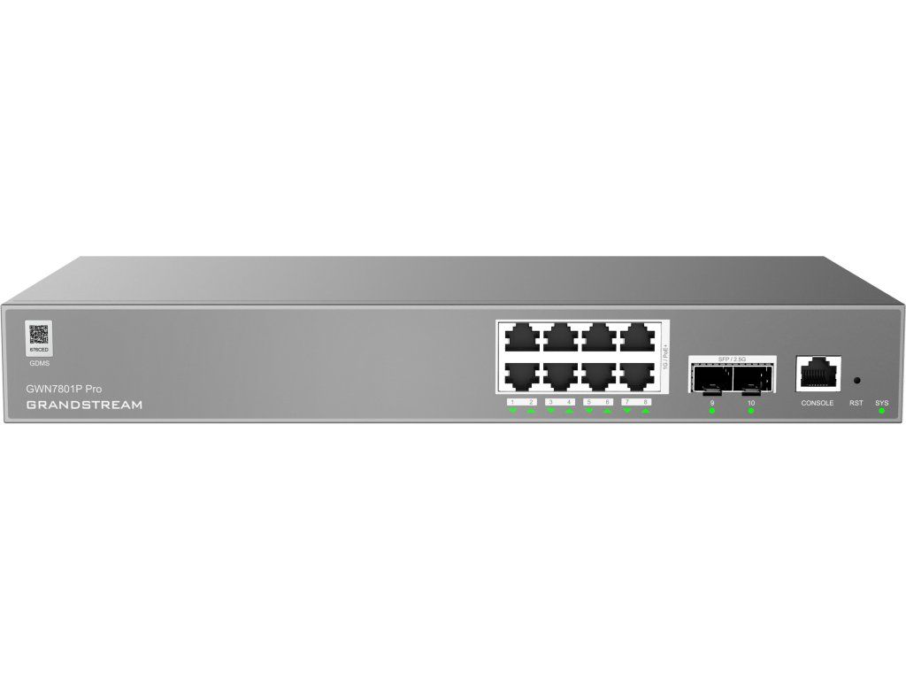 Grandstream GWN7801P Pro L2++, Managed switch, 8x 1Gb RJ45, PoE+, SFP, DHCP, CLI, VLAN GWN7801P Pro