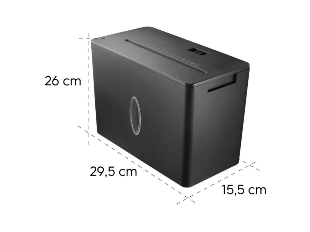 Vysoká úroveň bezpečnosti (P-4): Skartovačka využíva krížový rez, ktorým nareže papier na malé častice s rozmermi len 4 x 33 mm. Tento stupeň bezpečnosti (P-4 podľa normy DIN 66399) je vhodný na likvidáciu dokumentov obsahujúcich osobné a dôverné údaje, ako sú zmluvy, bankové výpisy či zdravotné záznamy.