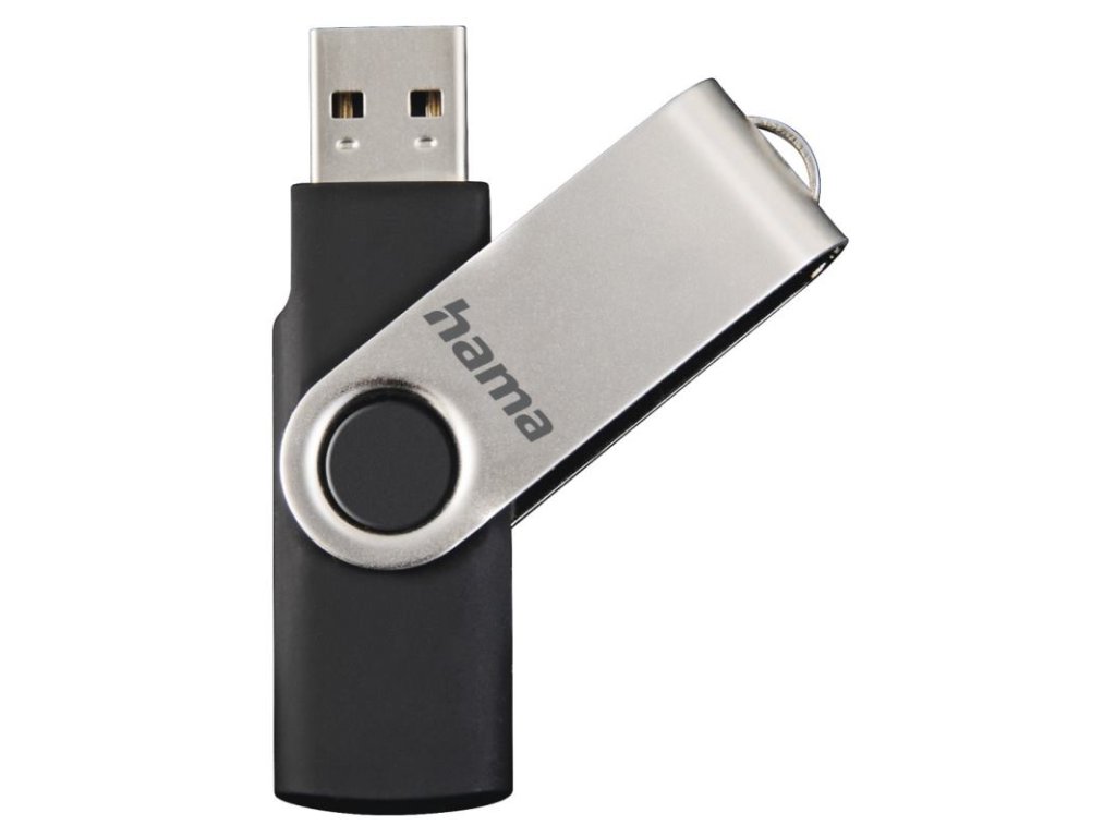 Hama USB 2.0 Flash Drive Rotate, 32 GB - praktické prenosné úložisko s otočným mechanizmom a možnosťou upevnenia na kľúčenku. Moderné pamäťové médium umožňuje opakované zapisovanie a mazanie dát. Prenosová rýchlosť až 10 MB/s, rozmery 66×18×8 mm. Kompatibilné s Windows 11/10/8/7/Vista/XP a macOS 9.0+. Plastové vyhotovenie v čierno-striebornej farbe. USB 2.0 konektor zabezpečuje širokú kompatibilitu so všetkými zariadeniami s USB rozhraním. Ideálne riešenie pre prenos a zálohovanie súborov.