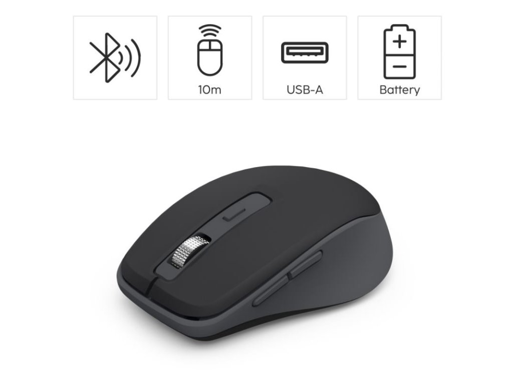 Hama WM-450 je pokročilá 7-tlačidlová optická myš navrhnutá pre efektívnu prácu s až tromi zariadeniami súčasne. Vďaka kombinácii 2,4 GHz USB prijímača a dvoch Bluetooth 5.2 pripojení môžete jednoducho prepínať medzi počítačom, tabletom či smartfónom.