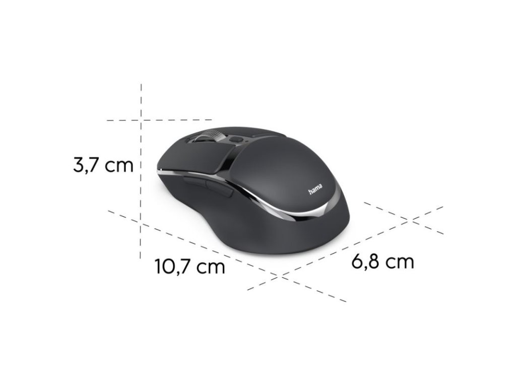 Hama WM-800 je pokročilá bezdrôtová optická myš s 8 tlačidlami, ktorá ponúka výnimočnú flexibilitu pripojenia až k trom zariadeniam súčasne. Vďaka kombinácii 2,4 GHz bezdrôtového USB prijímača a dvoch Bluetooth 5.2 pripojení si môžete jednoducho prepínať medzi počítačom, tabletom a smartfónom.