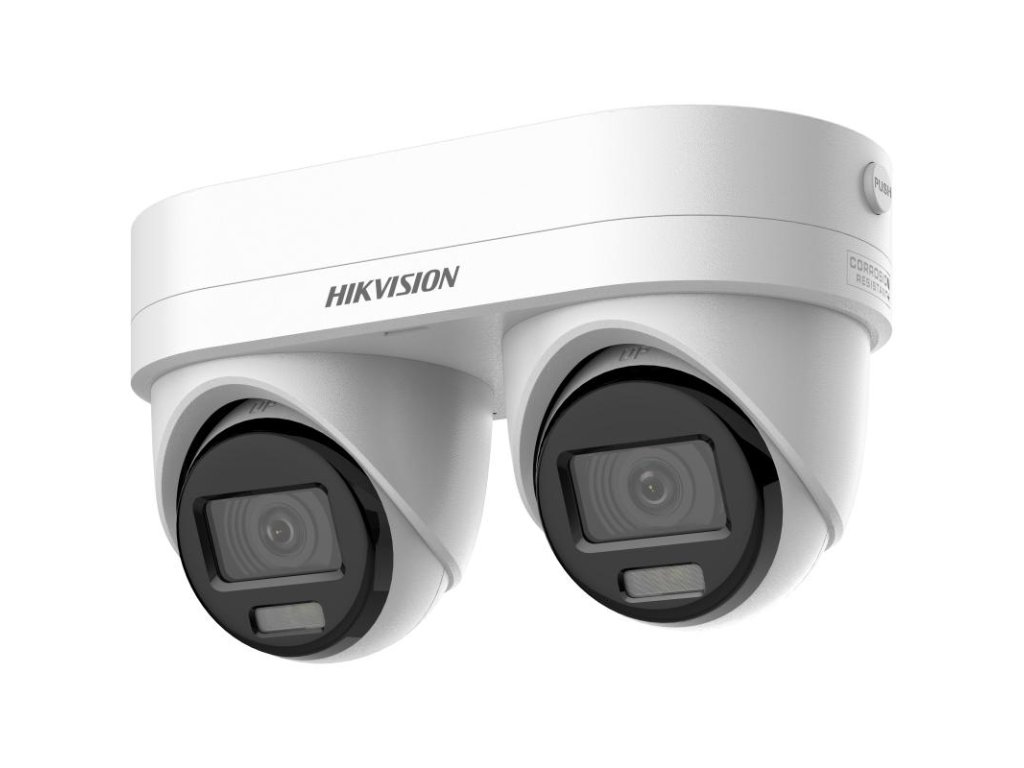 4MP AcuSense 2 obj. Turret IP kamera, 2 kanály/1 IP adresa/1 kábel , zoom 2.8/4mm, hybrid light, mic