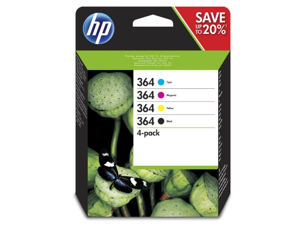 HP 364 Čtyřbalení originálních inkoustových kazet – Černá, azurová, purpurová, žlutá N9J73AE