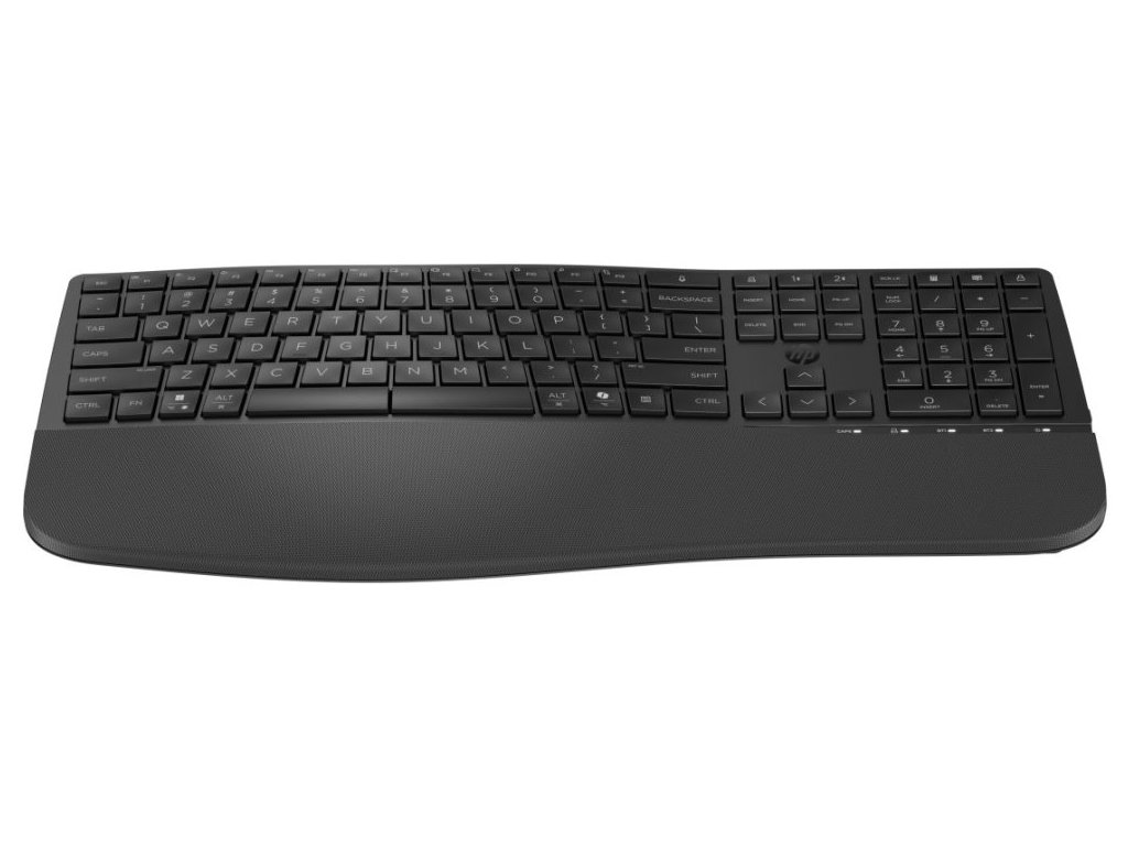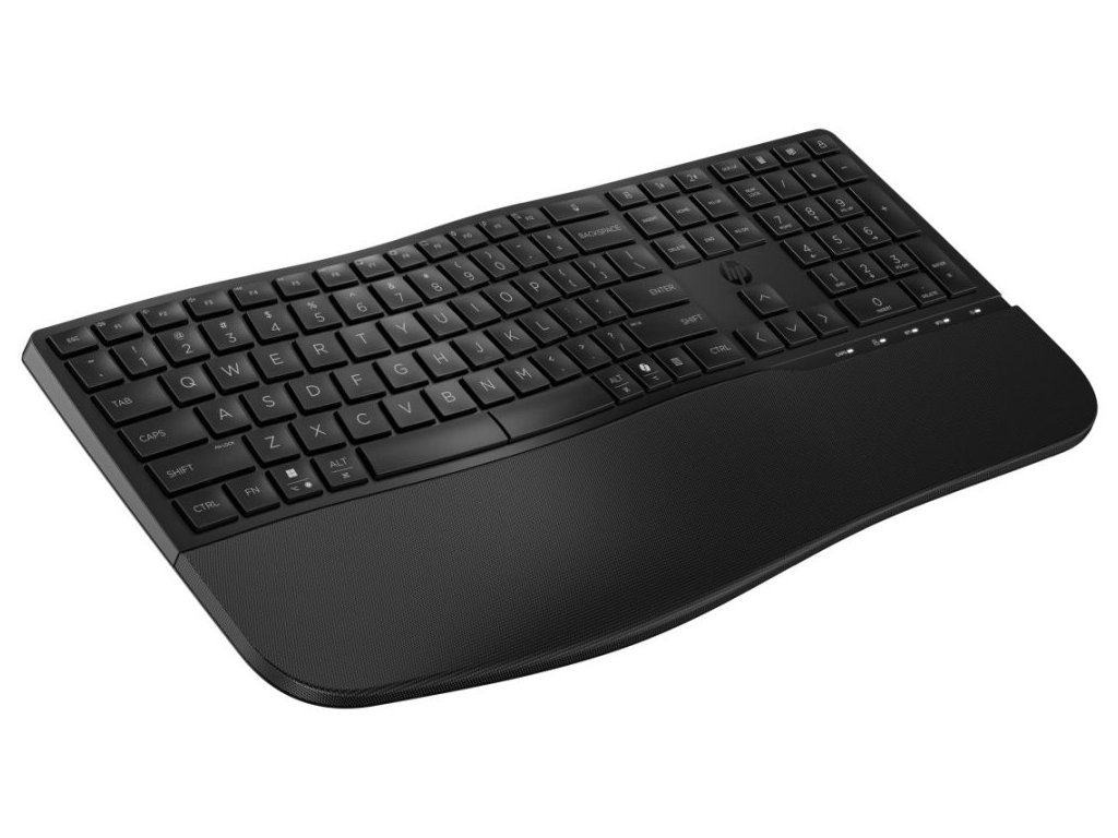 Klávesnice HP 685 Comfort nabízí špičkové ergonomické řešení pro náročné uživatele. Zvlněný tvar klávesnice v kombinaci s polstrovanou opěrkou ruky zajišťuje komfort i při celodenní práci. Unikátní systém tří nastavitelných úhlů psaní umožňuje přizpůsobit sklon klávesnice individuálním potřebám – od pozice bez sklonu (3,2°) přes neutrální sklon (6,7°) až po záporný sklon (-8,08°).
