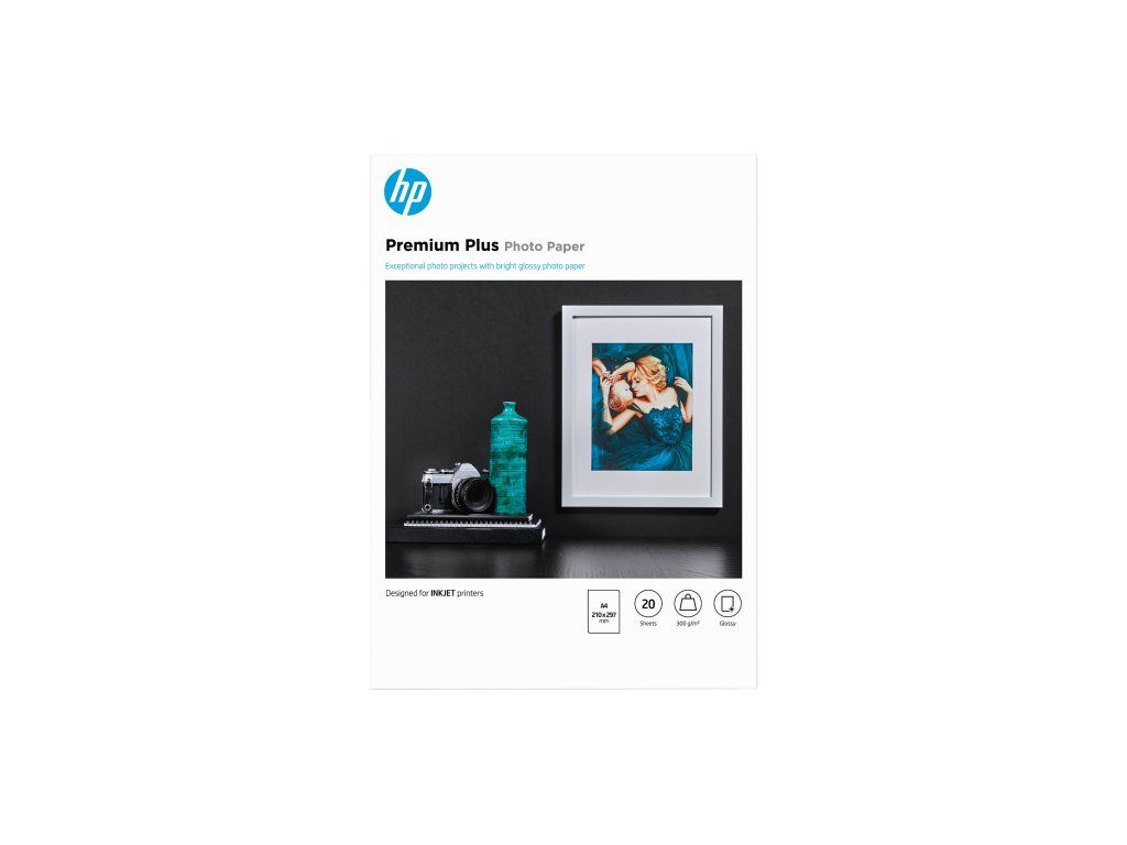 HP Premium Plus Glossy Photo Paper-20 sht/A4/210 x 297 mm, 300 g/m2, CR672A CR672A