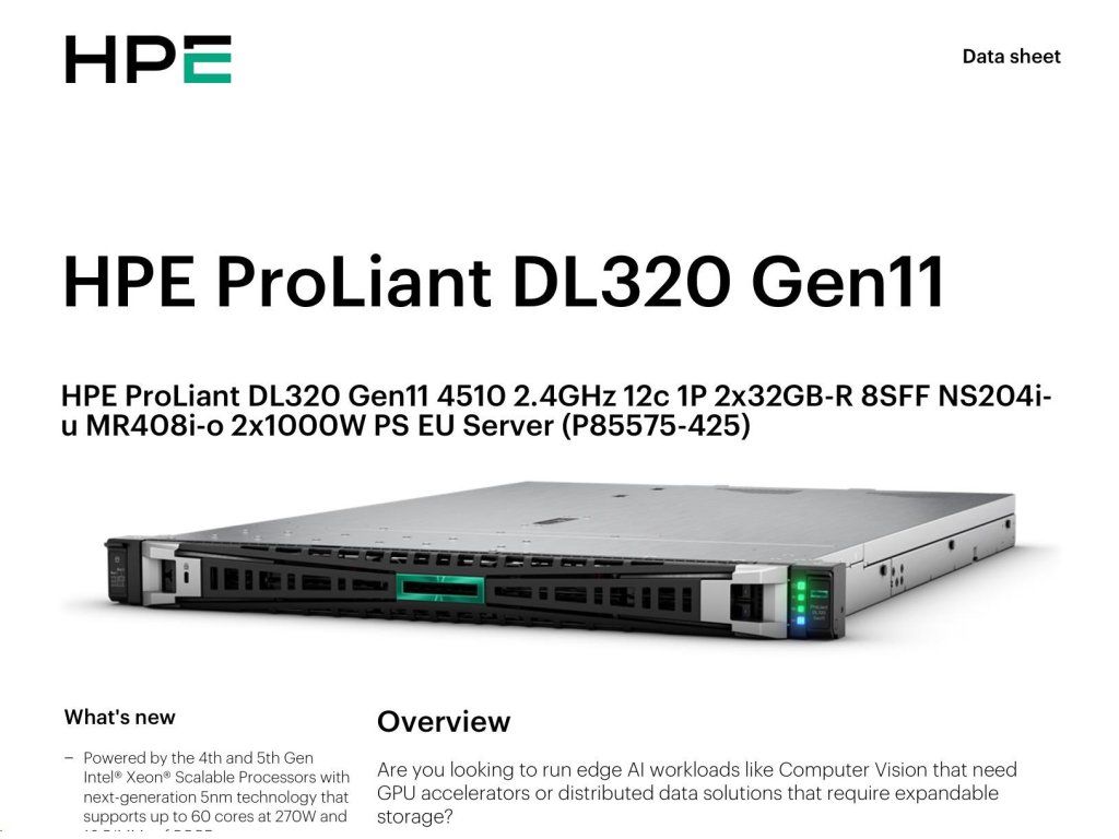 HPE PL DL320g11 4510 (2.4/12C) 2x32G (p64706) NS204(2x480) MR408i-o 8SFF 2x1000W 2p1G Smart Choice P85575-425