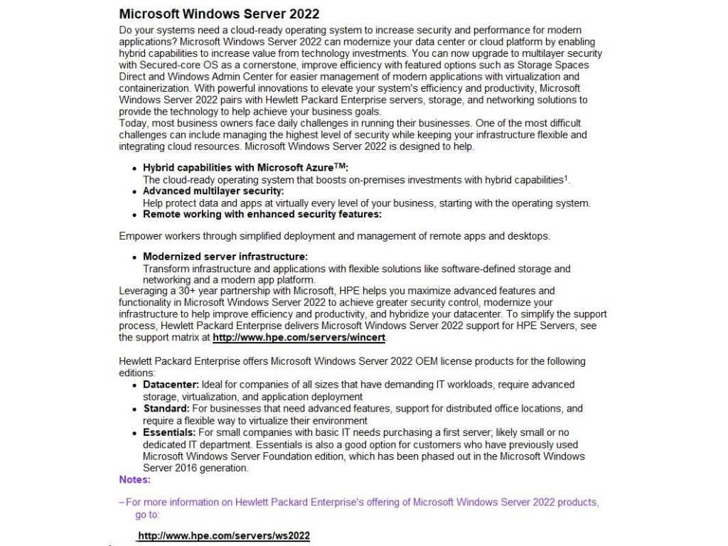 HPE Windows Server 2022 Datacenter Edition ROK 16Core No Reassignment Rights CZ EN PL RU SV P46123-021