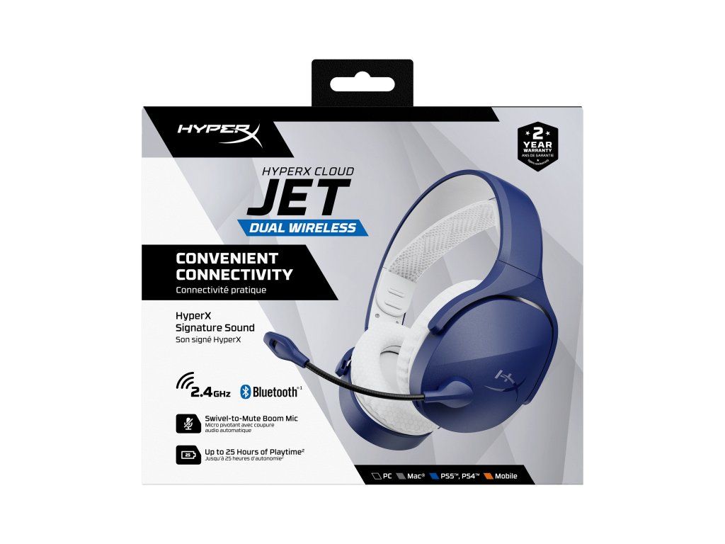 Duálna bezdrôtová náhlavná súprava HyperX Cloud Jet je navrhnutá pre začínajúcich hráčov aj tých, ktorí inovujú základnú výbavu, a ponúka bezproblémové používanie s pripojením 2,4 GHz a Bluetooth 5.3. Prepínať medzi počítačom, konzolou a mobilnými zariadeniami bez námahy a zároveň si môžete vychutnať bohatý zvuk poskytovaný 40 mm budiacimi jednotkami pre pohlcujúci herný zážitok. Zostaňte v spojení pomocou mikrofónu, ktorý sa stlmí otočením nahor, čo zaisťuje jasnú komunikáciu s tímom. Vďaka výdrži batérie až 25 hodín[1] sa môžete ponoriť do dlhších herných maratónov bez prerušenia. Integrované ovládacie prvky uľahčujú nastavenie hlasitosti, stlmenie mikrofónu a prepínanie medzi pripojeniami. Ľahký dizajn, priedušné sieťované náušníky a elastický odpružený hlavový most navyše poskytujú maximálny komfort pre herné maratóny. Ešte lepší herný zážitok so súpravou HyperX Cloud Jet.