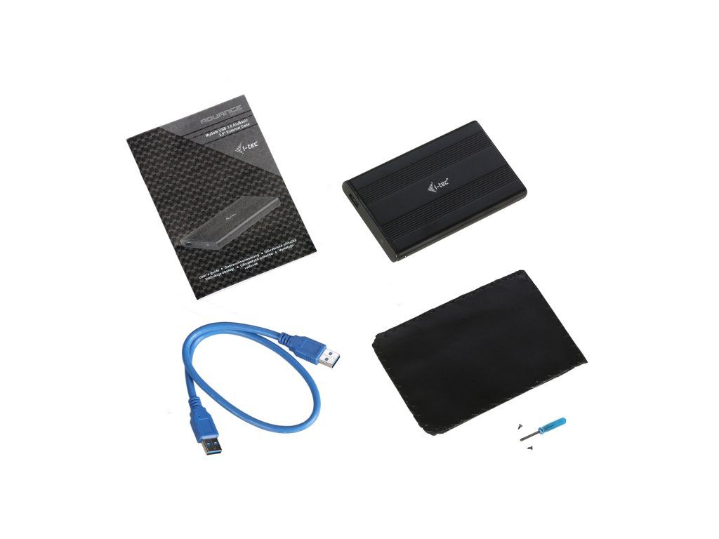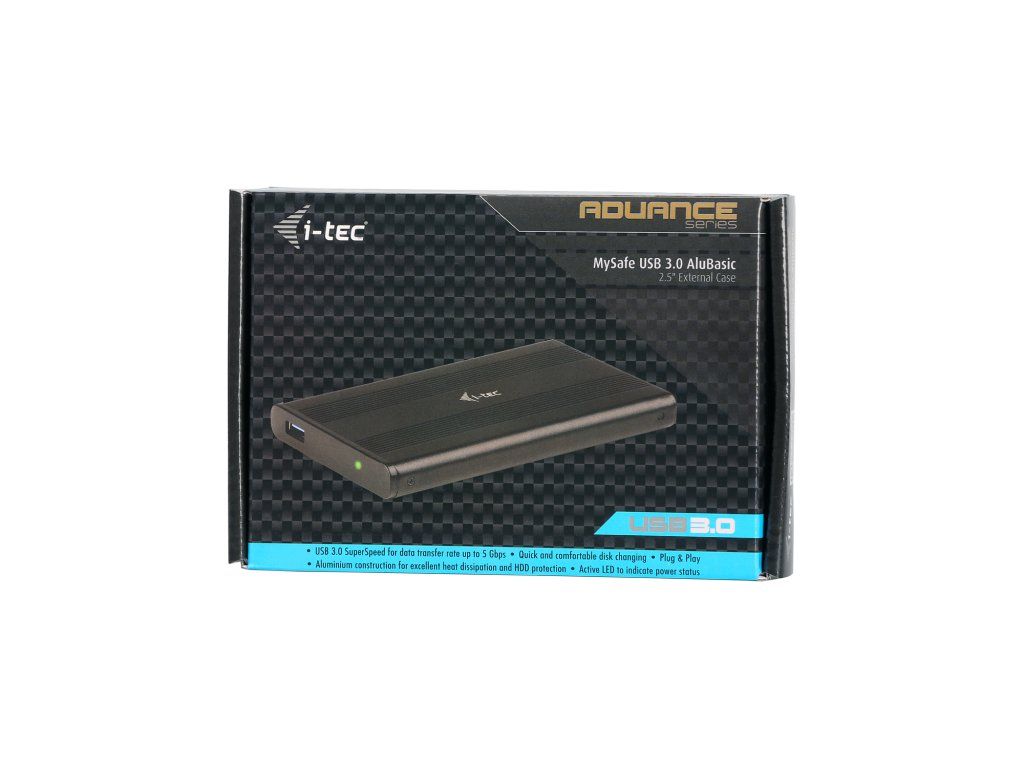 i-tec USB 3.0 MySafe AluBasic je externí rámeček pro všechny 2.5'' SATA I/II/III HDD nebo SSD s výškou až 9.5 mm. Připojení přes USB 3.0 nabízí rychlý a snadný přenos dat (až 5 Gbps). Samozřejmostí je zpětná kompatibilita s USB 2.0. Pevná hliníková konstrukce pro optimální odvod tepla a ochranu disku. Rámeček je dodáván s USB kabelem. Specifikace • Externí USB 3.0 rámeček pro 2.5'' SATA I /II/III HDD nebo SSD s výškou až 9.5 mm, rychlá a pohodlná výměna disku pro okamžitý přístup k Vašim datům • Rozhraní USB 3.0 pro vysokorychlostní přenos dat (5 Gbps), zpětně kompatibilní s USB 2.0 • LED indikátor, funkce Plug & Play, napájení ze sběrnice USB, automatická instalace ovladačů • Pevná hliníková konstrukce pro optimální odvod tepla a ochranu disku • OS Windows 2000 / XP / Vista / 7 / 8 / 8.1 / 10 32/64 bit, Mac OS X • Rozměry produktu 126 x 76 x 13 mm • Hmotnost produktu 60 g • Rozměry balení 160 x 110 x 35 mm • Hmotnost balení 170 g SYSTÉMOVÉ POŽADAVKY Hardwarové požadavky PC nebo notebook s volným USB portem Operační systém Windows 2000, Windows XP, Windows Vista, Windows 7 32/64bit, Windows 8 32/64bit, Windows 8.1 32/64bit, Windows 10 32/64bit – automatická instalace ovladačů ze systému Mac OS 10.x a výše – automatická instalace ovladačů ze systému OBSAH BALENÍ • Externí rámeček pro 2.5'' HDD • USB 3.0 kabel (50 cm) • Sada šroubků pro uchycení HDD • Uživatelská příručkaDodatočné parametre