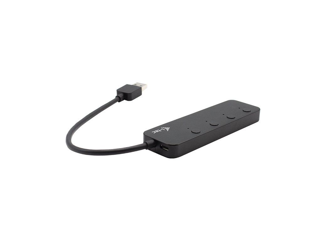 Malý, ale šikovný USB rozbočovač, který se vám bude hodit zejména při nedostatku USB portů ve vašem počítači či notebooku. Jeho hlavní výhodou je možnost jednotlivé USB 3.0 porty zapínat a vypínat, čímž získáte maximální rychlost i nabíjení u aktivních (zapnutých) portů. Rozbočovač můžete také volitelně připojit k napájecímu adaptéru až o výkonu 10 W*, čímž získáte možnost použít například několik HDD či SSD disků zároveň, či si nabít telefon či tablet. Použití rozbočovače je jednoduché – stačí zapojit do USB portu na vašem počítači a vše je hotovo – ovladače se nahrají automaticky ze systému. • 4 x USB 3.0 port (rychlost přenosu dat až 5 Gbps) • Možnost zapínání a vypínání jednotlivých portů • Možnost volitelně použít externí napájecí adaptér o výkonu až 10 W* • V případě použití adaptéru je rozbočovač schopen rychlého dobíjení BC 1.2 * Není součástí balení Specifikace • 1x integrovaný USB 3.0 kabel pro připojení k zařízení • 1x microUSBk připojení přídavného napájení HUBu až 10W (5V 2A) • 4x USB 3.0 port s podporourychlého nabíjení (BC 1.2) • 4x Tlačítko On/Offpro zapnutí a vypnutí USB portů • LED indikace (modré LED) • OS:Windows 10, macOS X, Linux, Android, Chrome OS • Rozměry produktu: 103 x 31 x 10 mm • Hmotnost produktu: 41 g Hardwarové požadavky: • Zařízení s volným USB-A portem Obsah balení • Manuál • ProduktDodatočné parametre