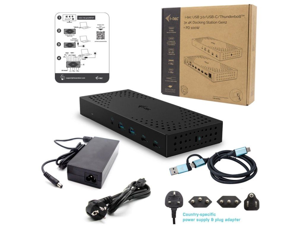 i-tec USB 3.0 / USB-C / Thunderbolt, 3x 4K Docking Station Gen 2, Power Delivery 100W CATRIPLE4KDOCKPD2