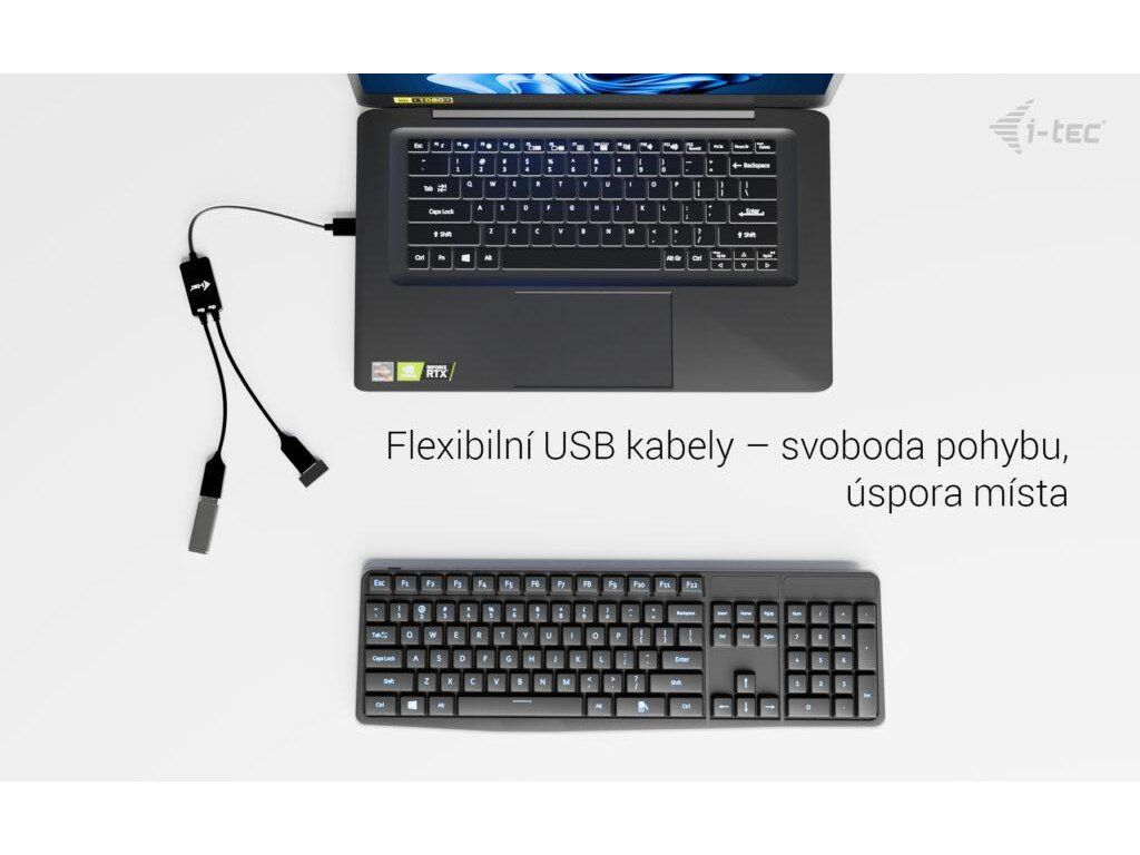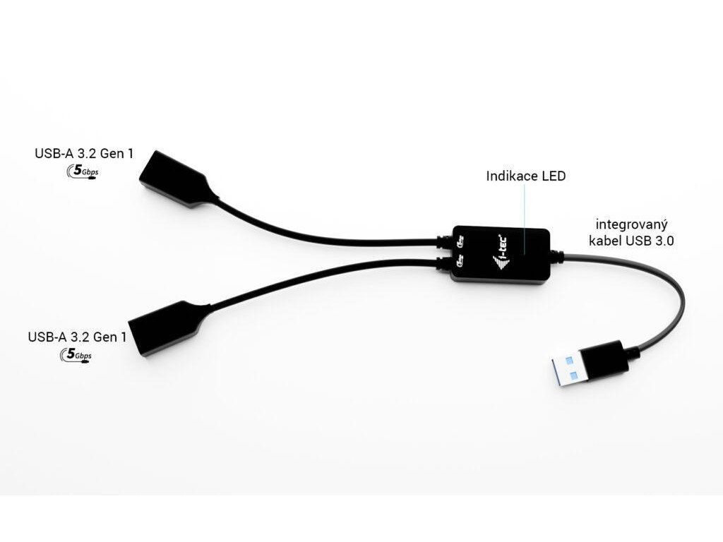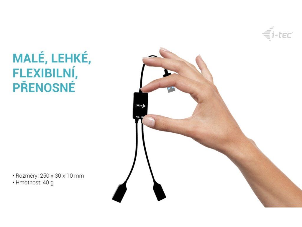 • Malý, efektivní a flexibilní USB-A kabelový HUB • 2× USB-A porty umožňují připojení externích periferií • Rychlý přenos dat přes USB (až 5 Gbps) • Ohebné kabely pro maximální flexibilitu připojení • Kompaktní rozměry umožňují snadné přenášení – vejde se i do kapsy • HUB podporuje všechny běžné moderní operační systémy (Windows, macOS, Linux, Android, Chrome OS, iPadOS) Tento HUB nabízí dva USB porty (2× USB-A), které umožňují připojit externí klávesnici a myš, přenášet data nebo filmy z USB flash disku rychlostí až 5 Gbps, nebo nabíjet mobilní zařízení. Není potřeba instalovat žádné ovladače – stačí HUB připojit pomocí USB-A kabelu a ihned jej můžete začít používat. Vestavěná ochrana proti přepětí chrání váš počítač v případě zkratu na připojených periferiích. Rozhraní je zpětně kompatibilní s USB 2.0. Díky kompaktním rozměrům a nízké hmotnosti jej snadno přenesete kamkoli s sebou. Specifikace • 1× integrovaný USB 3.0 kabel pro připojení k zařízení (10 cm) • 2× USB-A 3.2 Gen 1 (5 Gbps) na ohebném USB kabelu • LED indikace • Podporované operační systémy: Windows 10/11, macOS, Android, ChromeOS, iPadOS a Linux • Rozměry produktu: 250 × 30 × 10 mm • Hmotnost produktu: 40 g Hardwarové požadavky: • Zařízení s volným portem USB-A Operační systém: • Windows 10/11, macOS, Android, ChromeOS, iPadOS a Linux Obsah balení: • Produkt • Návod k použitíDodatočné parametre