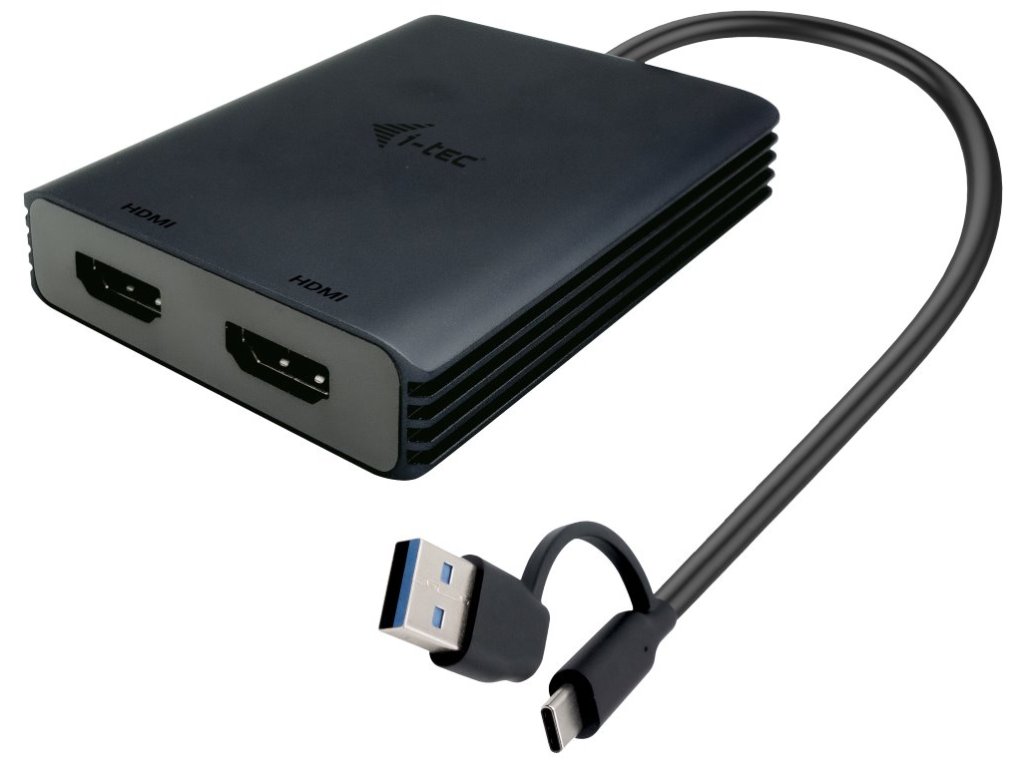 I-TEC USB-A/USB-C Dual 4K HDMIVideo adaptér, který umožňuje rozšíření vaší pracovní plochy o dva externí HDMI monitory. Připojení lze jednoduše realizovat skrze konektor USB-A či USB-C s podporou USB 4.0 a Thunderbolt 3/4. Adaptér podporuje přenos rozlišení 4K při 60 Hz včetně zvukového signálu.