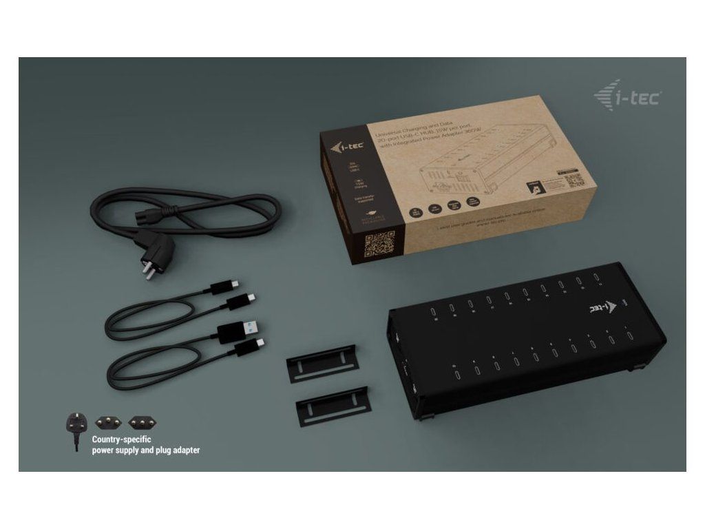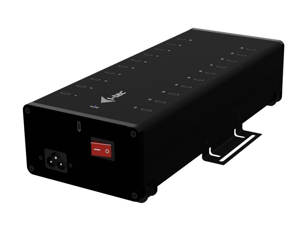 Výkonný HUB s tichým chodem vhodný pro nabíjení a přenos dat. Díky možnosti připojení skrze USB 3.0, USB-C či Thunderbolt 3/4 port je kompatibilní se všemi moderními notebooky. Má k dispozici 20 portů USB-C, z nichž každý podporuje nabíjení zařízení až 15 W a přenos dat rychlostí až 5 Gb/s (2× 5 Gbps, 18× 480 Mbps). Pokud chcete pouze nabíjet, není třeba HUB připojovat k počítači. Balení obsahuje napájecí adaptér s výkonem 360 W. Samozřejmostí je přepěťová a proudová ochrana.