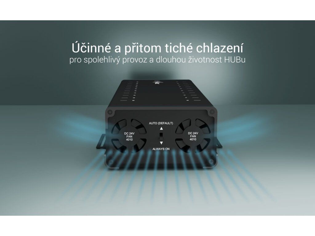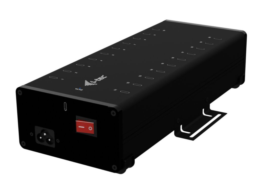 • Výkonný HUB pro nabíjení a přenos dat • HUB je kompatibilní se všemi moderními notebooky (připojení přes porty USB 3.0, USB-C nebo Thunderbolt™ 3/4). • HUB nabízí 20x USB-C portů • Každý port podporuje až 15 W nabíjení a datový přenos 5 Gbps nebo 480 Mbps • Chcete-li pouze nabíjet, HUB není potřeba připojovat k počítači. • HUB obsahuje integrovaný napájecí adaptér (360 W) • Efektivní a tiché chlazení • Přepěťová a proudová ochrana • Pro připojení není zapotřebí žádná instalace (Plug & Play) Tento moderní HUB nabízí 20 USB-C s funkcí Plug & Play a nabíjením až 15W na port. Díky tomu, že HUB má 20 USB portů, je možno nabíjet až 20 zařízení najednou. Zároveň porty umožňují datový přenos: dva USB porty (1 a 11) umožňují přenos 5 Gbps a zbývající porty podporují rychlost až 480 Mbps (USB 2.0). HUB nevyžaduje instalaci ovladačů, pouze jej pomocí USB kabelu připojíte ke svému počítači a můžete jej ihned začít využívat. HUB má vestavěnou přepěťovou ochranu vašeho počítače pro případ zkratu na periferních zařízeních. V případě, že HUB budete využívat pouze pro nabíjení, není potřeba jej připojovat k počítači. • Integrovaný napájecí adaptér o výkonu 360 W • 20x USB-C port, všechny podporují 15 W nabíjení • 2 porty nabízí datový přenos o rychlosti až 5 Gbps • 18 portů nabízí datový přenos o rychlosti až 480 Mbps • Přepěťová a proudová ochrana • Obsahuje sadu kovových držáků pro pevnou volitelnou instalaci na stůl. Specifikace • 1x port USB-C 3.2 gen.1 pro připojení k hostitelským zařízením • 2x port USB-C ( 1 a 11) podporující přenosovou rychlost až 5 Gb/s • 18x port USB-C podporující přenosovou rychlost až 480 Mb/s • Každý port USB-C podporuje až 15W nabíjecí výkon (5V/9V/12V) a rychlé nabíjení (BC 1.2) • 1x vstup napájení: AC 100-240V ~ 50/60Hz 2,2A (MAX) • Celkový výstupní výkon: 300 W • 1x vypínač pro zapnutí/vypnutí napájení výrobku • 1x Přepínač pro ovládání ventilátorů (režimy: AUTO, Always ON) • LED indikace napájení • LED indikace dat hostitele • Datový kabel USB-C (100 cm) • Datový kabel USB-C na USB-A (100 cm) • Přepěťová a nadproudová ochrana • OS: Windows 10/11, macOS, Linux, ChromeOS • Rozměry produktu: 273 x 109 x 62 mm • Hmotnost produktu: 1344 g SYSTÉMOVÉ POŽADAVKY Hardwarové požadavky: • Zařízení s dostupným portem USB-A, USB-C, USB4, Thunderbolt™3/4. Operační systém: • Windows 10/11, macOS, Linux, ChromeOS Obsah balení • Produkt • Napájecí kabel • Datový USB-C kabel (100 cm) • Datový USB-C na USB-A kabel (100 cm) • Sada kovových držáčků na volitelné připevnění na stůlDodatočné parametre