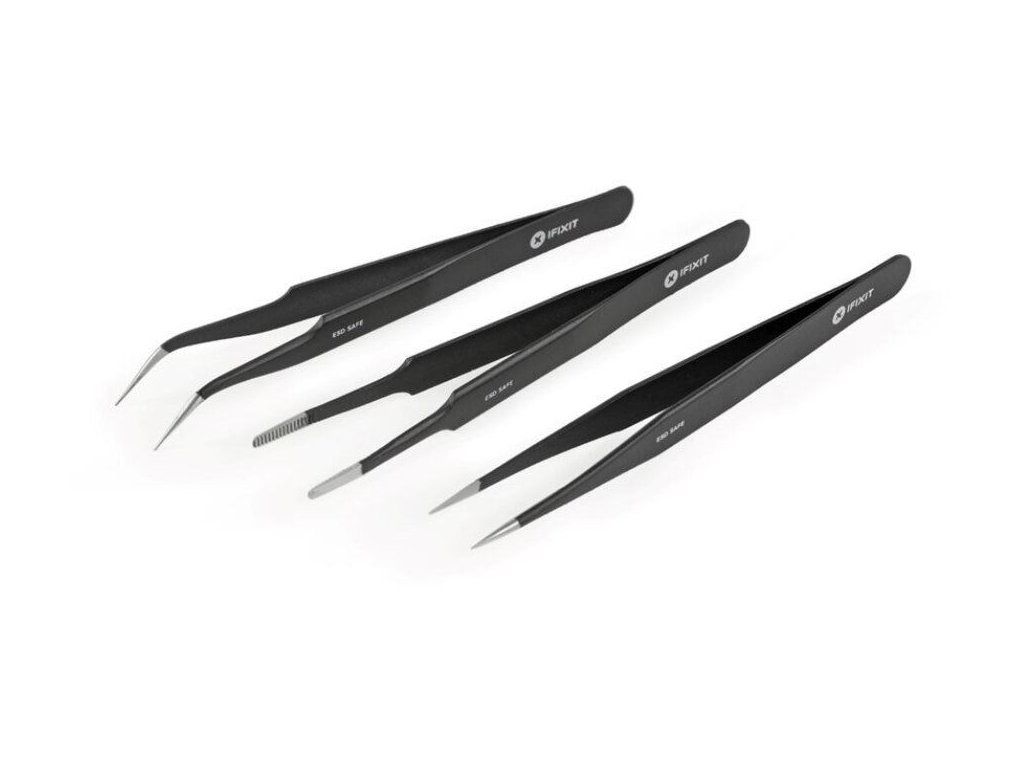 Sada iFixit Precision Tweezers Set Pro obsahuje tři pinzety pro nejrůznější pracovní činnosti, jako je například nadzvedávání, přidržování jemných součástek, vytahování či trhání. Pinzeta se špičatými hroty je ideální pro přesnou a jemnou práci, šikmé hroty se potom dostanou i do špatně přístupných míst a plochou pinzetu využijete pro pevné uchopení součástek bez rizika jejich poškození. Všechny nástroje mají ochranný potah ESD zabraňující elektrostatickým výbojům, takže je můžete použít i pro práci s citlivou elektronikou. SPECIFIKACE: *Použití: Univerzální *Typ: Uchopovací nástroj *Materiál: ocel *Počet pinzet: 3 pinzety *Barva pinzet: Černá *Rozměry a hmotnost balení: 10,2 x 1,4 x 20,5 cm / 72 g OBSAH BALENÍ: *3 pinzetyDodatočné parametre