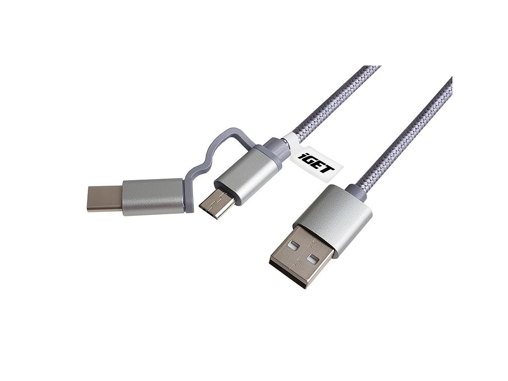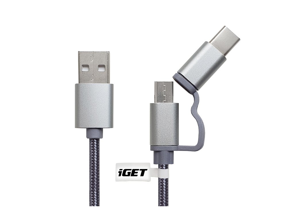 iGET G2V1 - USB kábel Micro USB/USB - C dlhý pre všetky mobilné telefóny, vrátane odolných 84000425