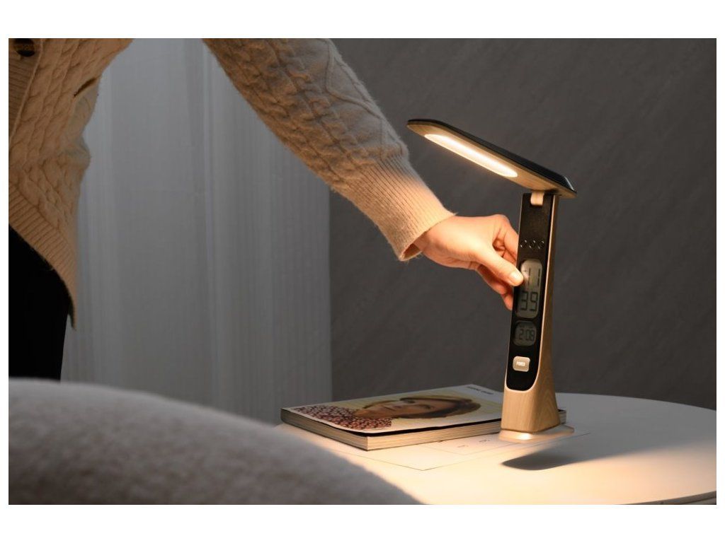 LED stolní lampička s praktickým digitálním displejem pro zobrazení data a času. Nabízí možnost volit mezi teplým, chladným a přirozeným odstínem světla. Možnost plynulého stmívání je ideální pro přizpůsobení osvětlení dle potřeb a momentální atmosféry. Integrovaná baterie o kapacitě 1800 mAh umožní lampičku používat i bez připojení k elektrické síti.