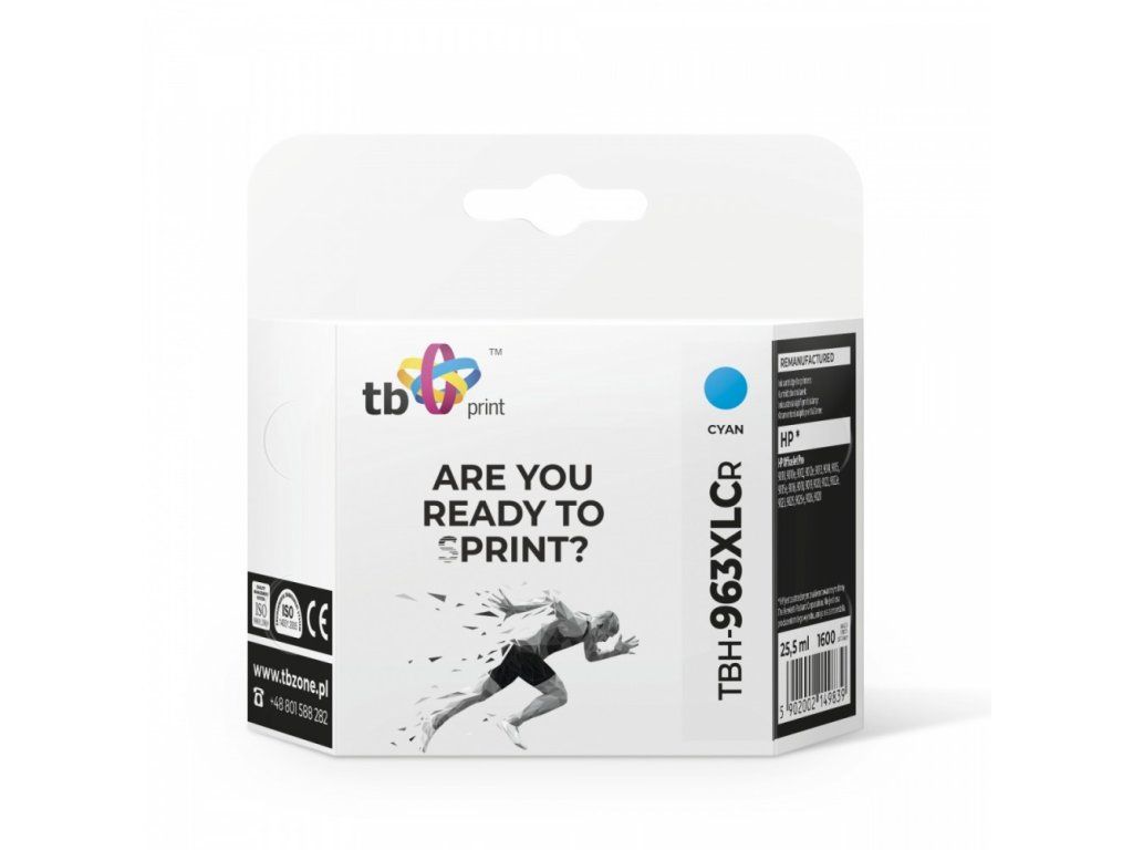 TB Print je dlouholetým výrobcem alternativních kazet pro celou řadu tiskáren světových výrobců. Kazety a tonery splňují nejpřísnější nároky na kvalitu i tisk samotný. TB Print je synonymum pro dokonalé věrný, ostrý tisk a to za stále atraktivní cenu. Typ (cartridge/toner): Cartridge-renovace Kapacita (ml): 25,5 Chip: Ano Barva: Modrá (Cyan) Kompatibilita: HP OfficeJet Pro 9010, 9010e, 9012, 9012e, 9013, 9014, 9015, 9015e, 9016, 9018, 9019, 9020, 9022, 9022e, 9023, 9025, 9025e, 9026, 9028Dodatočné parametre