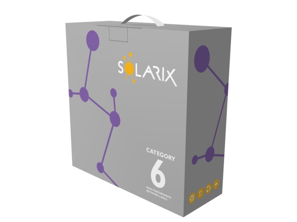 POZOR, nový 100 m box. Instalační kabel Solarix s označením SXKD-6-UTP-LSOH je spolehlivý nestíněný kabel kategorie 6, který je testován až do šířky pásma 450 MHz, a je určený pro provoz ethernetových protokolů, včetně 2.5GBASE-T a 5GBASE-T. Konstrukce kabelu je U/UTP s plastovým křížem, který zajišťuje maximální oddělení párů od sebe po celé délce kabelu. Typ pláště je LSOH s třídou reakce na oheň Dca-s2,d2,a1. Vodiče kabelu jsou vyrobeny z kvalitního měděného drátu s čistotou mědi 99,97 %. Kabel bez problémů splňuje požadavky z mezinárodních standardů ISO/IEC 11801, EN 50173 a ANSI/TIA 568.2-D. Výkonové parametry tohoto kabelu byly otestovány nezávislou testovací zkušebnou FORCE TECHNOLOGY v rámci programu EC Verified, a to na nejvyšší úroveň tzv. Component Level. Certifikát je k dispozici zde na webu v záložce ''Odkazy'' nebo přímo na stránkách laboratoře FORCE. V případě CPR (nařízení EU č. 305/2011) je kabel testován v systému posuzování vlastností AVCP 3. Stejně jako ostatní kabely Solarix, je i kabel SXKD-6-UTP-LSOH značen metráží po 1 m v rozsahu od 0 do 100 m. Kabel je dodáván ve vysoce odolném třívrstvém leštěném kartónovém boxu, na kterém jsou uvedeny všechny nezbytné produktové informace, včetně čárových kódů, výrobní šarže, popisu a nejdůležitějších technických parametrů. Technické parametry Kategorie: CAT6 Podporované protokoly: 2.5/5GBASE-T a nižší Stínění: ne Šířka pásma: testováno do 450 MHz Typ a velikost vodiče: měděný drát 0,55 mm ± 0,005 mm Izolace a průměr vodiče s izolací: HDPE 0,98 mm Třída reakce na oheň, typ pláště: Dca-s2,d2,a1, LSOH Barva pláště: fialová RAL 4005 Průměr kabelu: 6,1 mm Váha: 42,8 kg/km NVP: 69 % Propagation delay: 535 ns/100 m Delay skew: nižší než 45 ns/100 m Skladovací teplota: -20 °C až 60 °C Provozní teplota: -20 °C až 60 °C Teplota při instalaci: 0 °C až 50 °C Balení: 100 m, třívrstvý kartónový box Rozměry balení (výška x hloubka x šířka): 315 mm x 315 mm x 120 mm Počet balení na paletě: 72 boxůDodatočné parametre