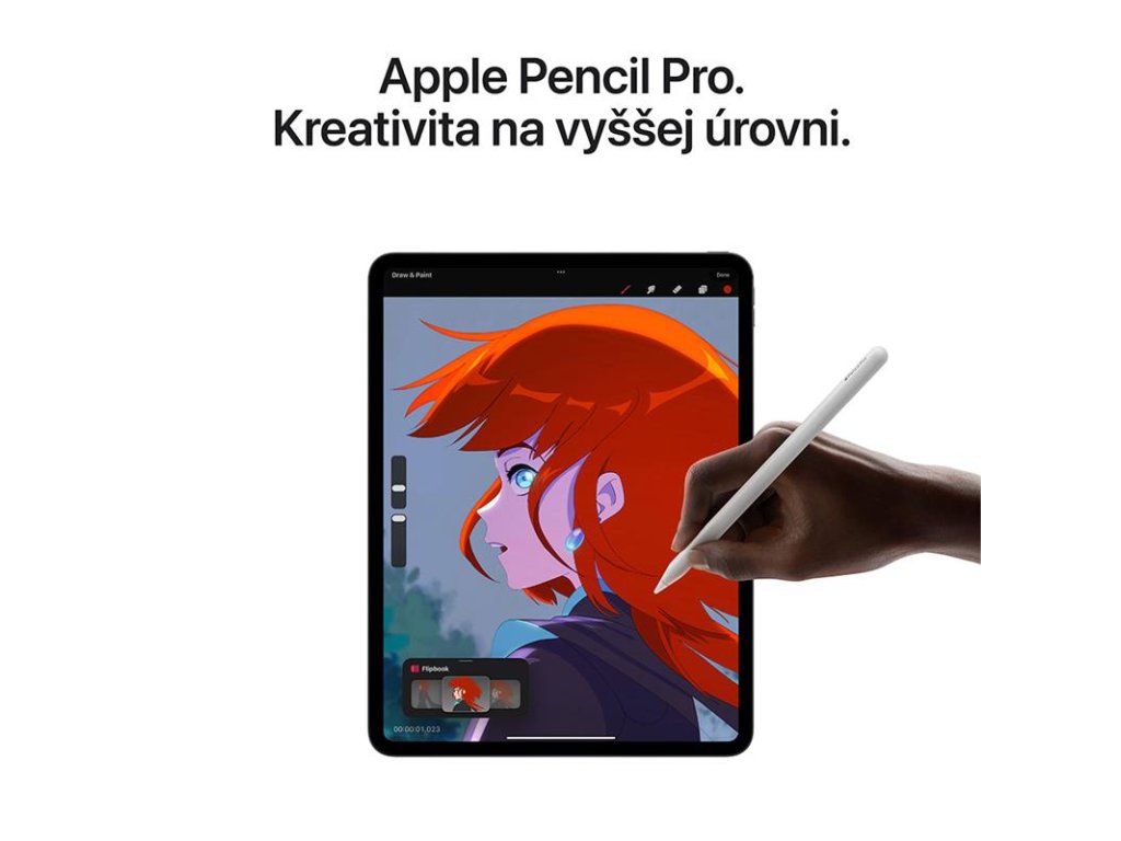 APPLE PENCIL A MAGIC KEYBOARD K IPADU PRO – S ceruzkou Apple Pencil Pro môžeš iPad Pro premeniť na maliarske plátno alebo najlepší zápisník od Apple. S iPadom Pro je kompatibilná aj ceruzka Apple Pencil (USB-C). Klávesnica Magic Keyboard k iPadu Pro je tenká a ľahká, pohodlne sa na nej píše a má vstavaný sklenený trackpad s haptickou odozvou. Zároveň je to kryt, ktorý iPad chráni. Doplnky sa predávajú samostatne.