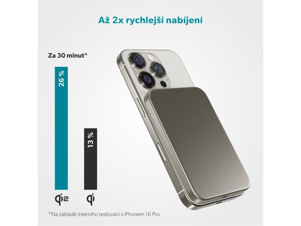 Certifikácia Qi2 & kompatibilita s MagSafe: Užite si rýchle 15W bezdrôtové nabíjanie vďaka technológii Qi2 – aj pre iPhony. Nabíjajte až 2× rýchlejšie ako s bežnými Qi nabíjačkami.
